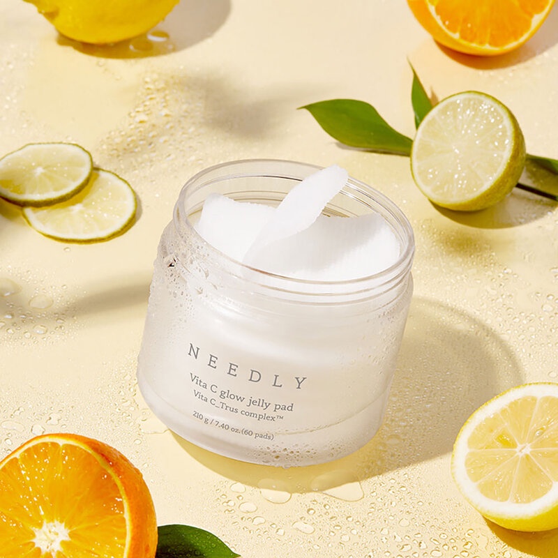 NEEDLY Vita C Glow Jelly Pad60 Padsเพียงแผ่นเดียว ก็ปรับผิวที่หมองคล้ำให้กระจ่างใสขึ้นได้กับวิตามินโทนเนอร์แบบแผ่น ด้วยแพดเยลลี่เนื้อนุ่มแนบสนิทกับผิวหน้า ที่มีความสดชื่นจากผลไม้ อุดมส่วนผสมหลักวิตามินซีคอมเพล็กซ์ ช่วยผลัดเซลล์ผิวที่เสื่อมสภาพ เติมความชุ่มชื้น ลดเลือนจุดด่างดำ ปรับผิวให้กระจ่างใสมีชีวิตชีวา
