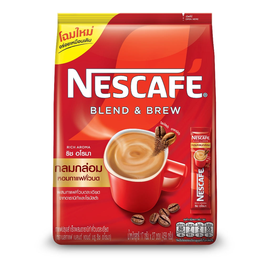 *สินค้ามีการปรับเปลี่ยน แพคเกจ สงวนสิทธิ์งดรับคืนในการคืนสินค้าNESCAFÉ เนสกาแฟ เบลนด์ แอนด์ บรู กาแฟปรุงสำเร็จ ริช อโรมา 3อิน1 แบบถุง (27 ซอง)
