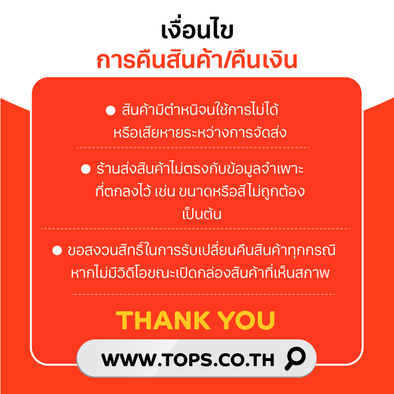 สินค้าที่ได้รับอาจมีการปรับเปลี่ยนแพ็คเกจและปริมาณจากผู้ผลิต ขออนุญาตสงวนสิทธิ์ในการเปลี่ยนแปลงดังกล่าว โดยไม่ต้องแจ้งให้ทราบล่วงหน้า