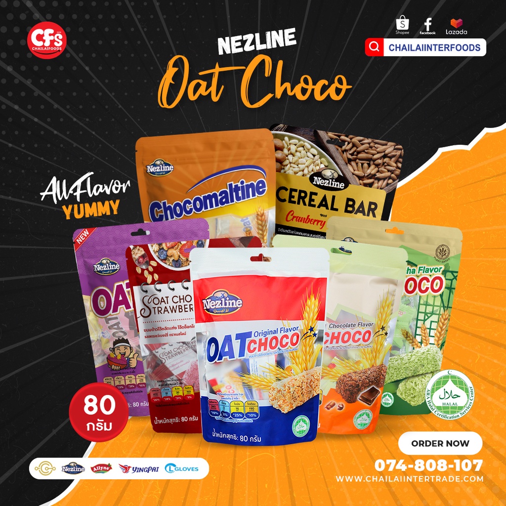 *** ชุด 4 ห่อแถมช้อนเกาหลี(มูลค่า 25 บาท) พิเศษเฉพาะเดือนกรกฎาคมถึงกันยายน 66 นี้เท่านั่น จำนวนจำกัด🔥 Nezline OAT CHOCO ขนมข้าวโอ๊ตอัดแท่ง ตราเนสไลน์ อร่อย กรุบๆกรอบๆ มีปริมาณแคลลอรี่น้อย มีประโยชน์ต่อร่างกาย เด็กกินได้ ผู้ใหญ่ทานดี เหมาะกับคนที่รักสุขภาพ กินเพลิน ๆ ได้ทั้งวัน ที่สำคัญทานแล้วไม่อ้วน มีรสหวานน้อย ๆ ค่ะ ผลิตและนำเข้าจากประเทศมาเลเซีย 🔥