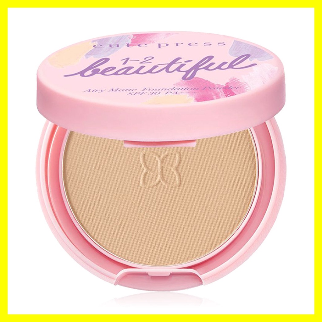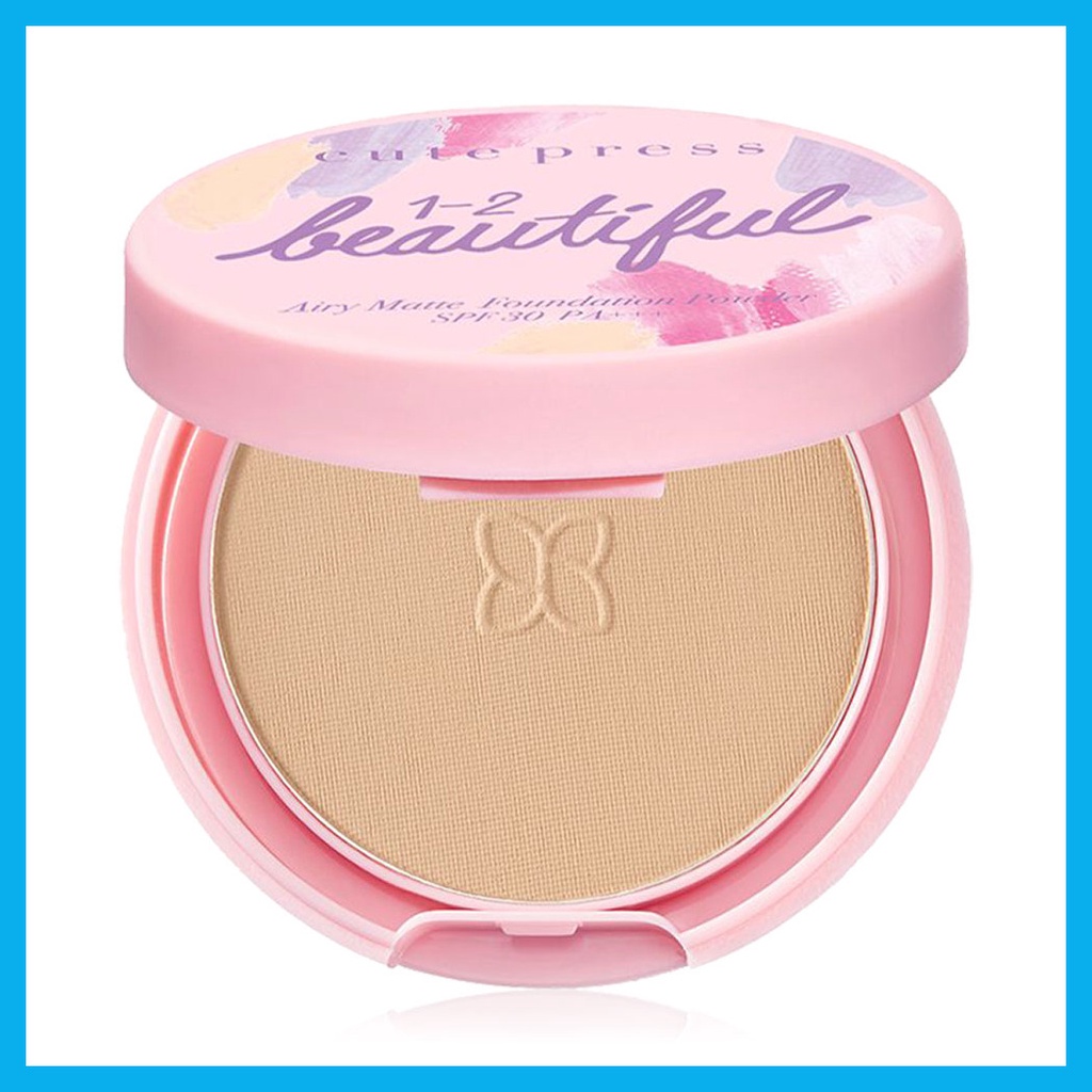 Cr.instagram.com/cute_pressCute Press 1-2-Beautiful Airy Matte Foundation Powder SPF30/PA+++ Mini 5g #02นวัตกรรมแป้งงานผิว ไซส์มินิ ด้วยแร่ธรรมชาติ 3 ชนิดจากญี่ปุ่น ปกปิดเรียบเนียนเข้ากับผิวได้อย่างแนบสนิท และมอบสัมผัสเบาสบายอย่างที่ไม่เคยรู้สึกมาก่อน พร้อมเทคโนโลยี Soft Focus ให้ผิวเนียนใสไร้ที่ติ ช่วยเบลอรูขุมขน เสมือนใส่ฟิลเตอร์ให้ผิว พิเศษกว่าด้วยอณูแป้งทรงกลีบดอกไม้ ช่วยดูดซับความมันได้อย่างดี สามารถควบคุมความมันยาวนาน 12 ชม. กันน้ำ กันเหงื่อ สีไม่ดรอประหว่างวัน ให้ผิวดูเฟรชตลอดเวลา นอกจากนั้นยังช่วยปกป้องผิวจากรังสี UVA1 UVA2 และ UVB ด้วย SPF 30 PA+++ พร้อมการบำรุงด้วยวิตามิน ซี เพื่อผิวแลดูกระจ่างใส ให้คุณกล้าเผยผิวสวย หน้าใสยืนหนึ่งทุกสถานการณ์