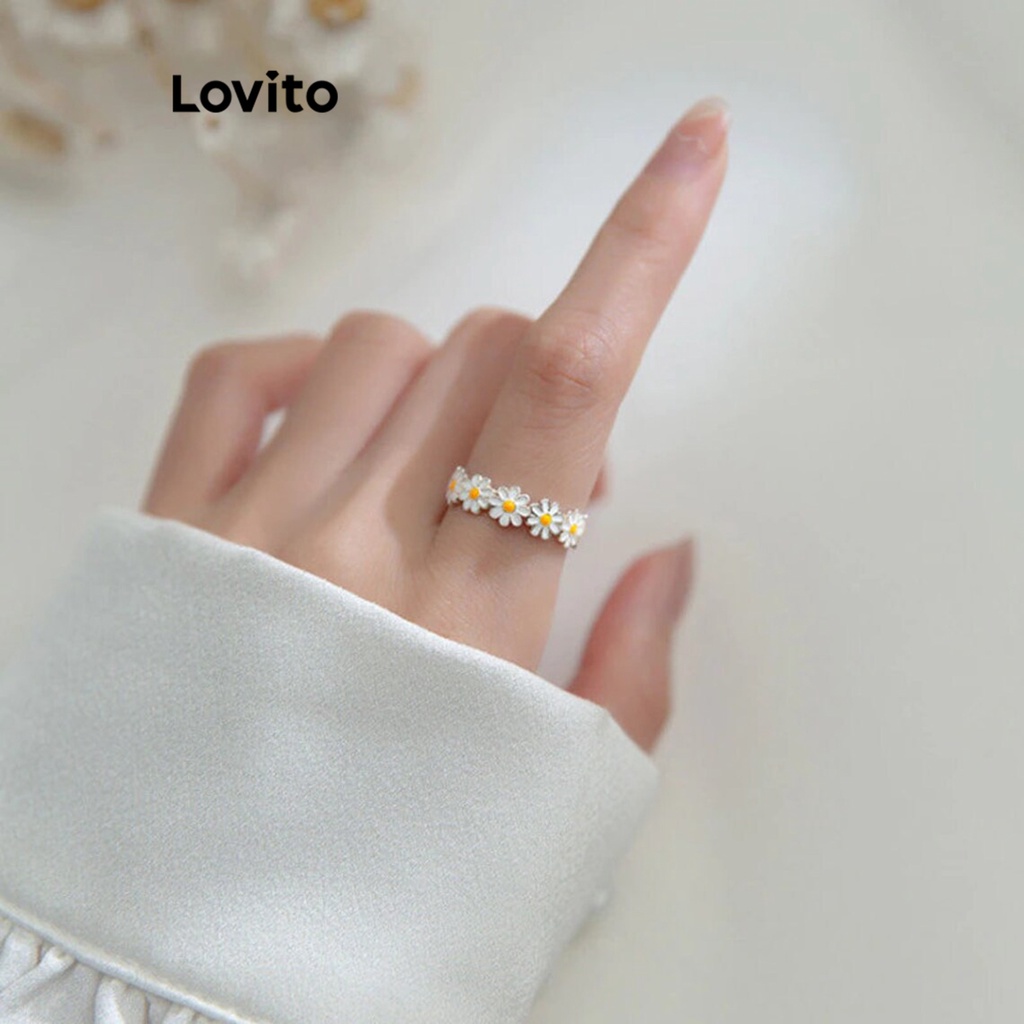 Lovito Nhẫn kim cương giả màu trơn thường ngày cho Nữ lfa01069 (Trắng/Bạc)