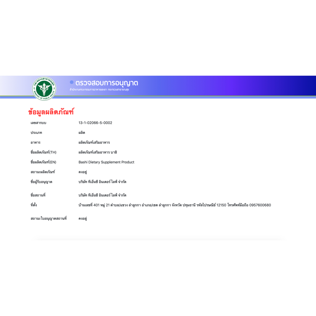Bashi Dietary Supplement Product