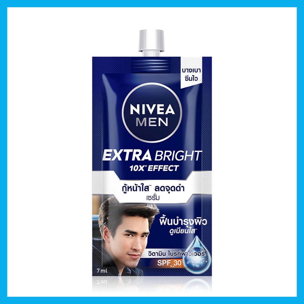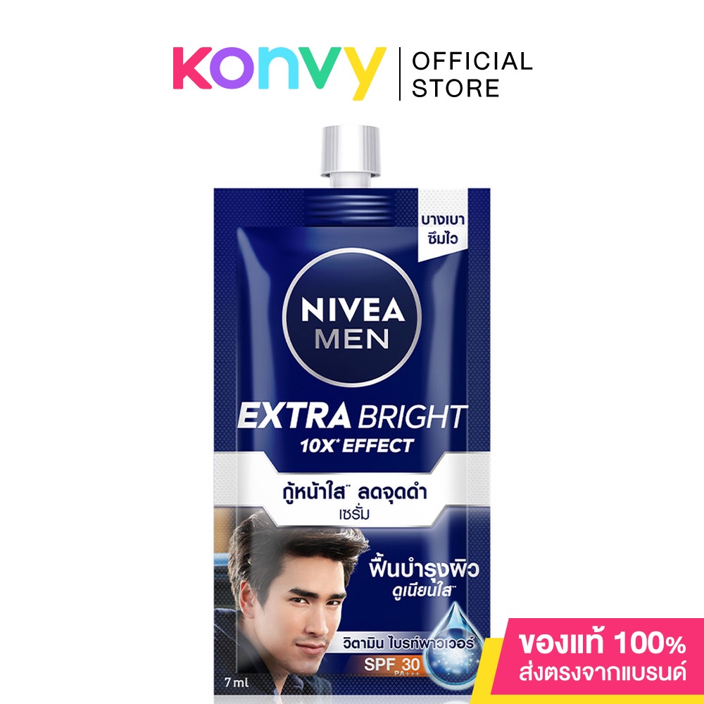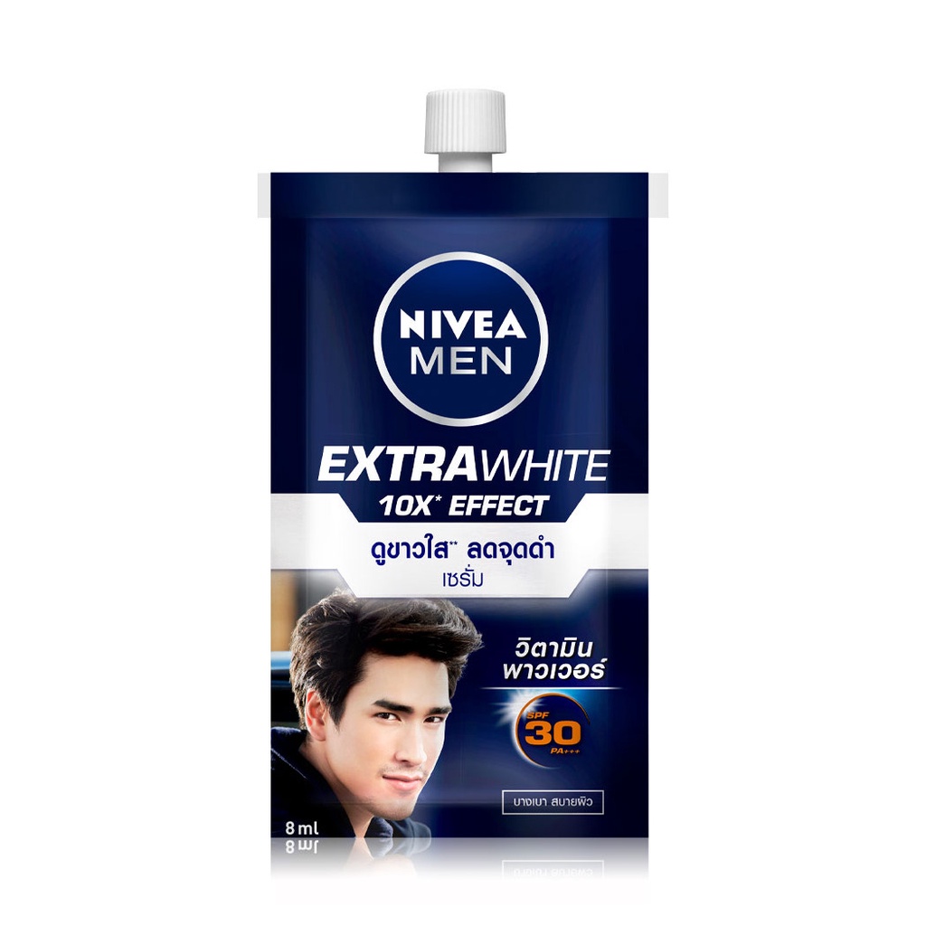 NIVEA Men Extra White Serum SPF307gสีผิวสม่ำเสมอ จุดด่างดำลดเลือนกับเซรั่มซึมซาบเร็วล้ำลึก สำหรับผู้ชายเพื่อผิวดูกระจ่างใสเนียนออร่าห่างไกลจุดด่างดำฝังลึกสูตรบางเบาสบายผิวผสานพลังวิตามินพาวเวอร์ช่วยฟื้นบำรุงผิวพร้อมสารสกัดไวท์บูสท์ฟื้นบำรุงผิวคล้ำเสียและลดเลือนจุดด่างดำฝ้าแดดฝังลึกถึงชั้นในผิวได้อย่างมีประสิทธิภาพปกป้องแดด ด้วยSPF30 ให้ผิวดูสว่างใสเนียนออร่าแม้ต้องเผชิญแดดแรงทุกวัน•ลดเลือนจุดด่างดำในชั้นผิว