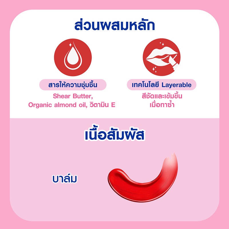 • สีสดใส Sassy Red พร้อมเทคโนโลยี Layerable สีชัดและเข้มขึ้นเมื่อทาซ้ำ ให้คุณสนุกกับการกำหนดความเข้ม-อ่อนของสีได้ดั่งใจ ไม่ว่าจะเป็นสีอ่อนสำหรับวันง่ายๆ หรือสีเข้มสดพร้อมปาร์ตี้กับเพื่อนๆ