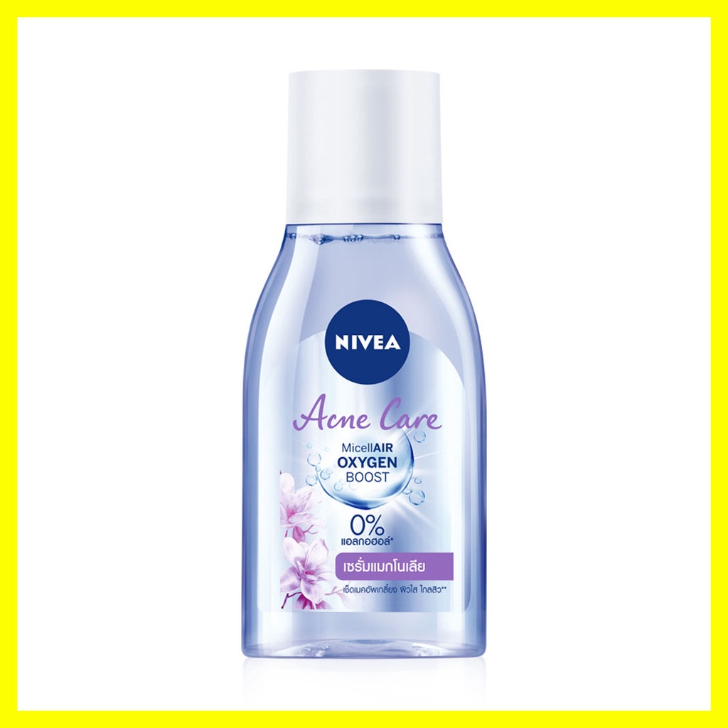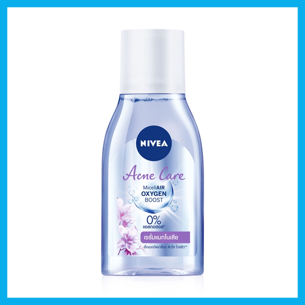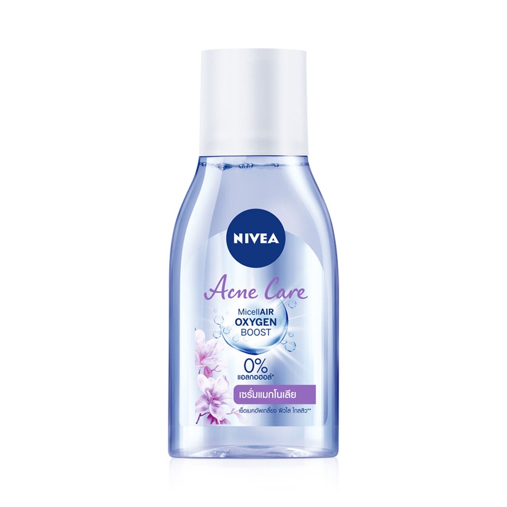 Cr. facebook.com/NIVEAThailandNIVEA Acne Care Make Up Clear Micellar Water 125mlผลิตภัณฑ์เช็ดทำความสะอาดเครื่องสำอางสูตรน้ำสำหรับผิวมันและมีปัญหาสิวสูตรใหม่0%แอลกอฮอล์ทำความสะอาดอย่างหมดจดด้วยพลังอนุภาคไมเซล่าออกซิเจนบูสท์ลงลึกถึงร่องรูขุมขนดูดจับเมคอัพและสิ่งสกปรกตกค้างให้หลุดออกอย่างง่ายดาย