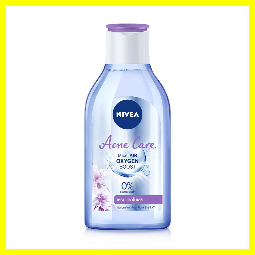 NIVEA Acne Care Make Up Clear Micellar Water 400ml ผลิตภัณฑ์เช็ดทำความสะอาดเครื่องสำอางสูตรน้ำ สำหรับผิวมันและมีปัญหาสิว สูตรใหม่ 0% แอลกอฮอล์ ทำความสะอาดอย่างหมดจดด้วยพลังอนุภาคไมเซล่า ออกซิเจน บูสท์ ลงลึกถึงร่องรูขุมขน ดูดจับเมคอัพและสิ่งสกปรกตกค้างให้หลุดออกอย่างง่ายดาย ผิวสะอาดหมดจดเกลี้ยงเกลา ห่างไกล 10 ปัญหาผิว ได้แก่ สิวอุดตัน, สิวผด, สิวเสี้ยน, รูขุมขนกว้าง, ผิวมัน, รูขุมขนอุดตัน, ผิวแห้งกร้าน, ผิวลอกเป็นขุย, ผิวหมองคล้ำ และออกซิเจนในผิวลดลง• ทำความสะอาดหมดจดเกลี้ยงเกลา ลงลึกถึงร่องรูขุมขน