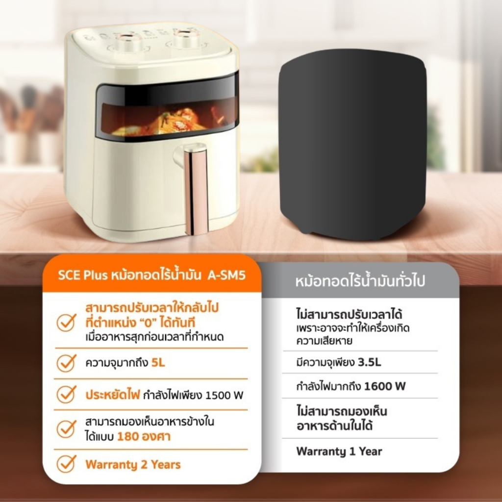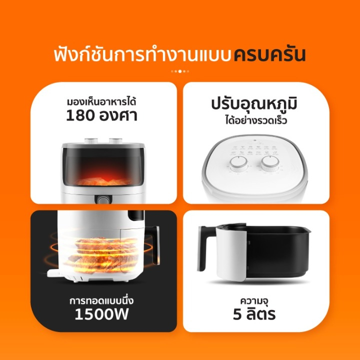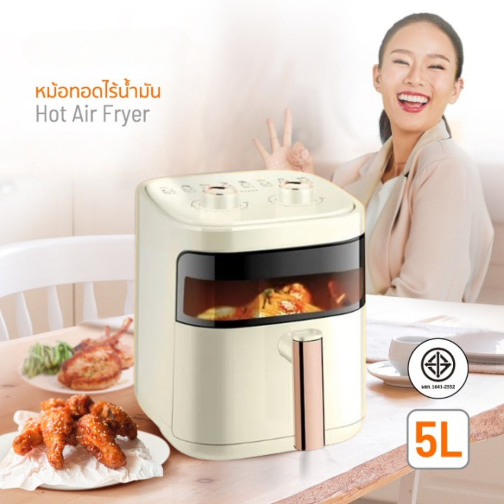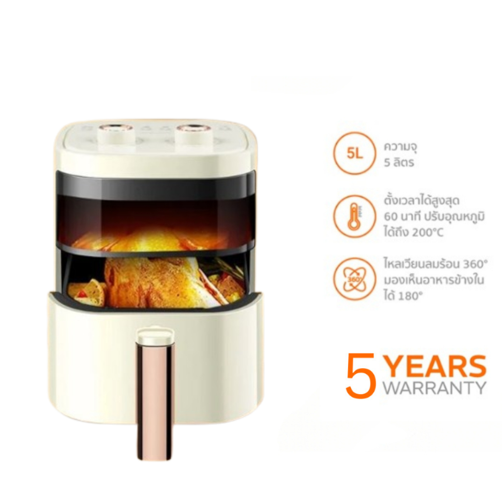 Airfryer หม้อทอดไร้น้ำมันอเนกประสงค์ ความจุขนาดใหญ่ 5 ลิตรพร้อมตะแกรงรองหม้อทอด