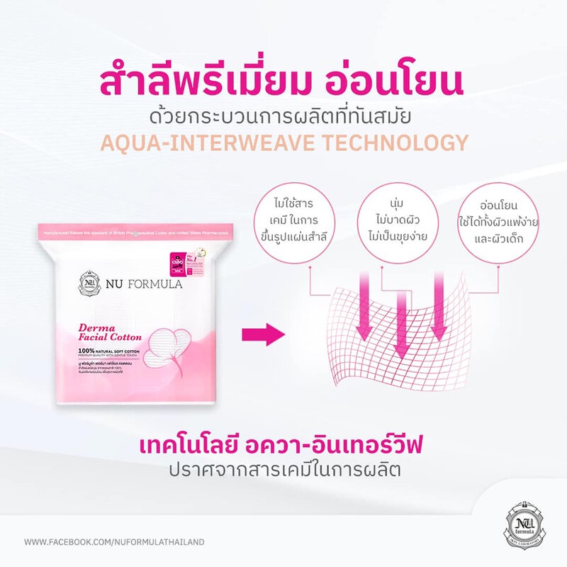 Nu Formula Derma Facial Cotton 200pcsแผ่นสำลีสำหรับทำความสะอาดผิวหน้า ผลิตจากใยฝ้ายธรรมชาติ 100% นุ่มพิเศษ ถนอมผิวหน้า ช่วยเช็ดล้างเครื่องสำอางบนใบหน้าได้อย่างหมดจดอ่อนโยน ไม่ระคายเคืองผิว