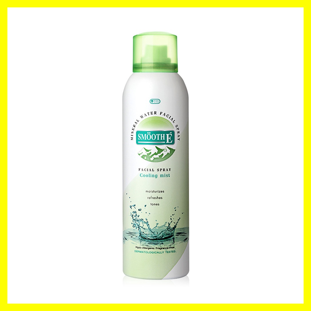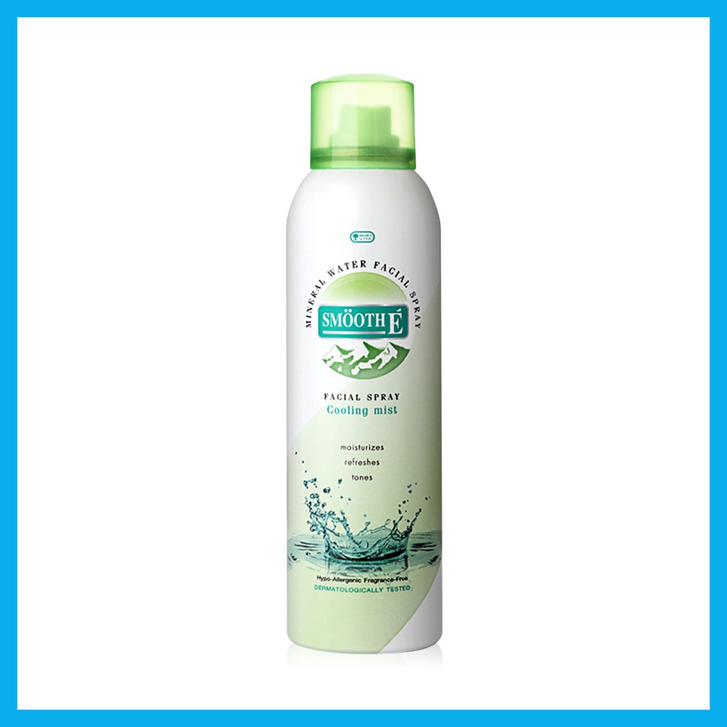 Smooth E Mineral Water Facial Spray Cooling Mist 150mlสเปรย์น้ำแร่บริสุทธิ์ธรรมชาติ 100% ที่มีส่วนผสมจาก Eau de source marine ประเทศฝรั่งเศส ที่มีแร่ธาตุสูงกว่าน้ำแร่ปกติ ให้ความสดชื่น ช่วยกักเก็บความชุ่มชื้นได้ยาวนานขึ้นพร้อมกระชับฟื้นฟูผิวให้แข็งแรง ปกป้องผิวจากมลภาวะ ลดการเกิดสิว ใช้ได้กับทุกสภาพผิว• น้ำแร่จาก Eau de Source marine ประเทศฝรั่งเศส ที่มีแร่ธาตุหลากหลายชนิด