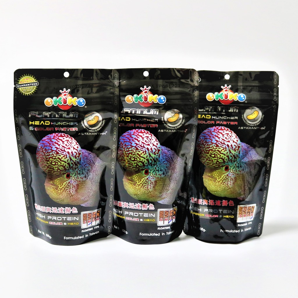 OKIKO PLATINUM ขนาด 100 g. อาหารปลาเกรดพรีเมี่ยม คัดสรรวัตถุเกรด A ที่ให้โปรตีน และวิตามินสูง เพื่อเสริมสร้างทรงหัว และโครงสร้างที่สวยงามของปลาหมอสี มี Astaxanthin เพื่อเพิ่มสีสันสวยงาม ถั่วนัตโตะ ช่วยปรับสมดุลของระบบย่อยอาหาร และ คาโรทีนอยด์ ช่วยต่อต้านสารอนุมูลอิสระ เพิ่มความเงางาม ทำให้สีสันของปลาโดดเด่น ช่วยเพิ่มจุดประกายของปลาหมอสี ภายใน 1-2 สัปดาห์ ไม่มีส่วนผสมของฮอร์โมน สาเหตุที่ทำให้เป็นหมัน-เม็ด M ขนาดประมาณ 2 mm.