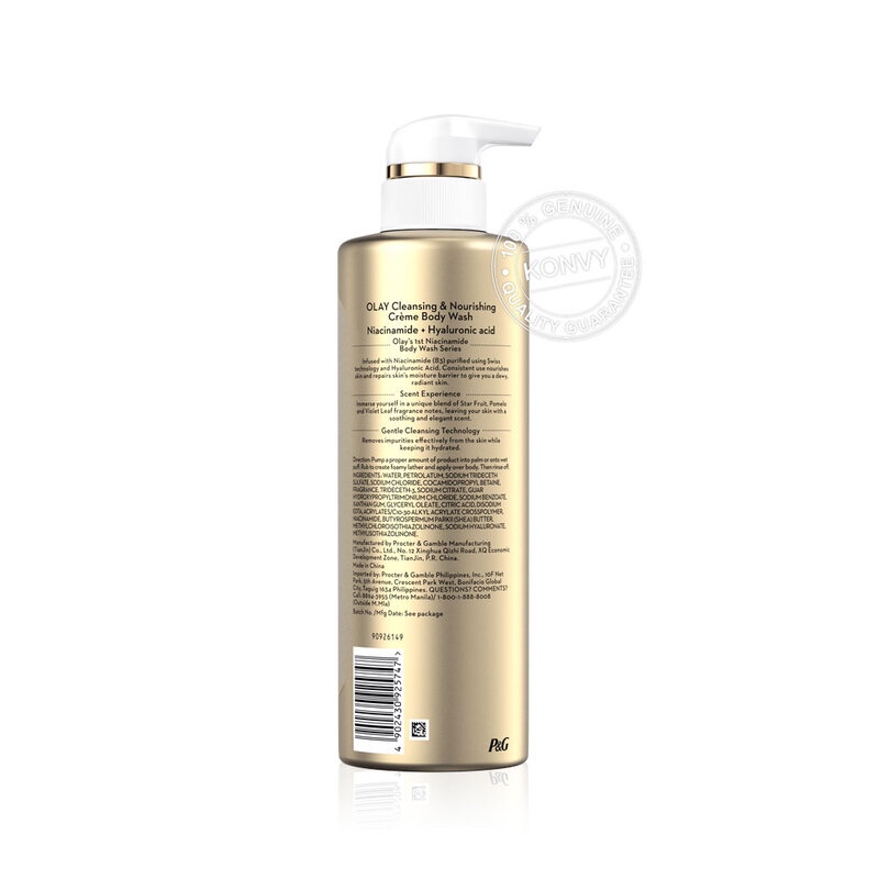 Cr.facebook.com/OlayThailandOlay Cleansing & Nourishing Cream Body Wash Niacinamide + Hyaluronic Acid 500mlครีมอาบน้ำพร้อมไนอะซินาไมด์ช่วยทำความสะอาดและบำรุงล้ำลึกด้วยส่วนประกอบไนอะซินาไมด์(B3) พร้อมไฮยาลูโรนิคเอซิดเพื่อผิวนุ่มเด้งเปล่งประกายและช่วยเก็บความชุ่มชื้นผสานกลิ่นหอมแบบเฉพาะเพื่อการปลอบประโลมที่หรูหรา