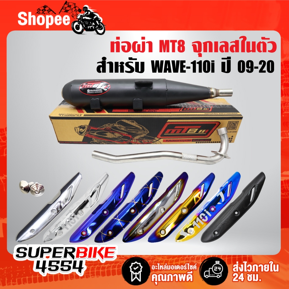- MT8 ท่อผ่า + กันร้อน (เลือกในตัวเลือก) + น๊อตเลส 2 ตัว