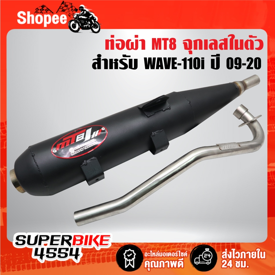 MT8 ท่อผ่า WAVE-110i ปี09-20,เวฟ110i ปี09-20 จุกเลสในตัว คอ25 มิล คอสแตนเลสแท้ มอกแท้ 100% MT8 [เลือกด้านใน]รายละเอียด