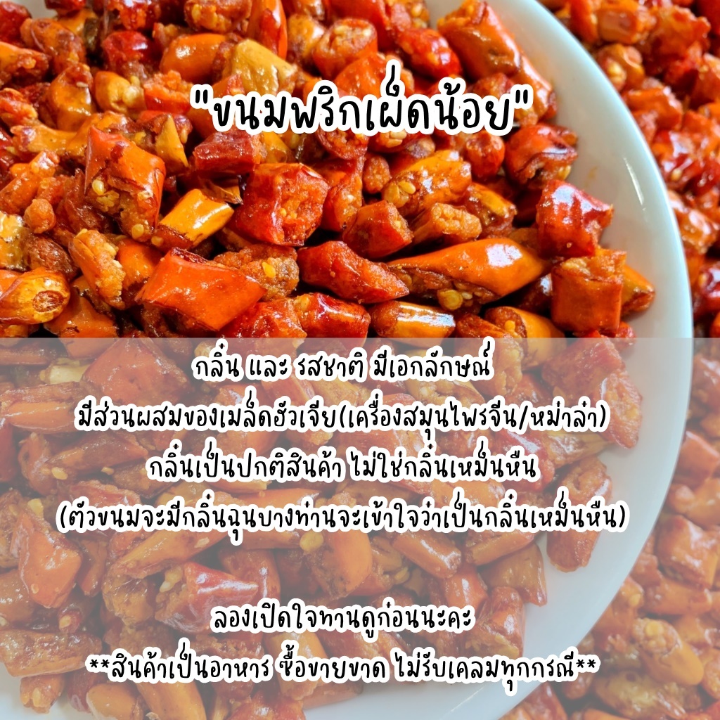 รสขนมพริกเผ็ดน้อย คือตัวพริกกรอบท่อน ในภาพที3ค่ะ"ขนมพริกเผ็ดน้อย"