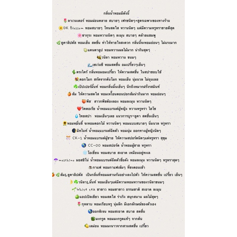 กลิ่นน้ำหอมมีดังนี้