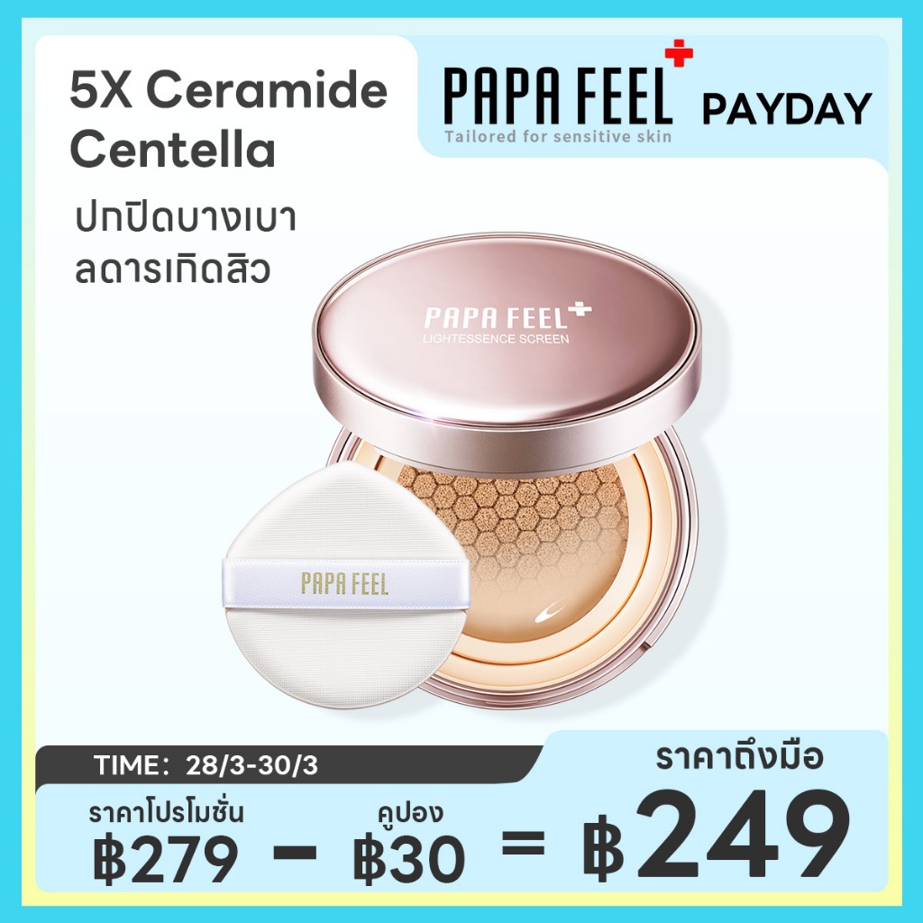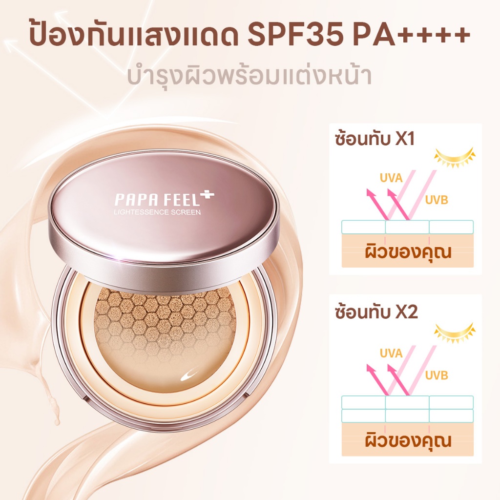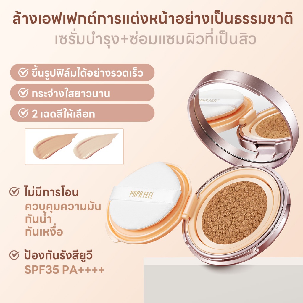 PAPA FEEL invisible คุชชั่น Cushion กันแดด SPF35 PA+++ เนื้อบางเบา ติดทนนาน 24H 5X Ceramide ติดทนนาน เนื้อแมตต์ คุชชั่นลดสิว ผสานเทคโนโลยีกันน้ำ กันเหงื่อ คอนซีลเลอร์ คุชชั่น สกิน คอลซินเลอร์ conceale