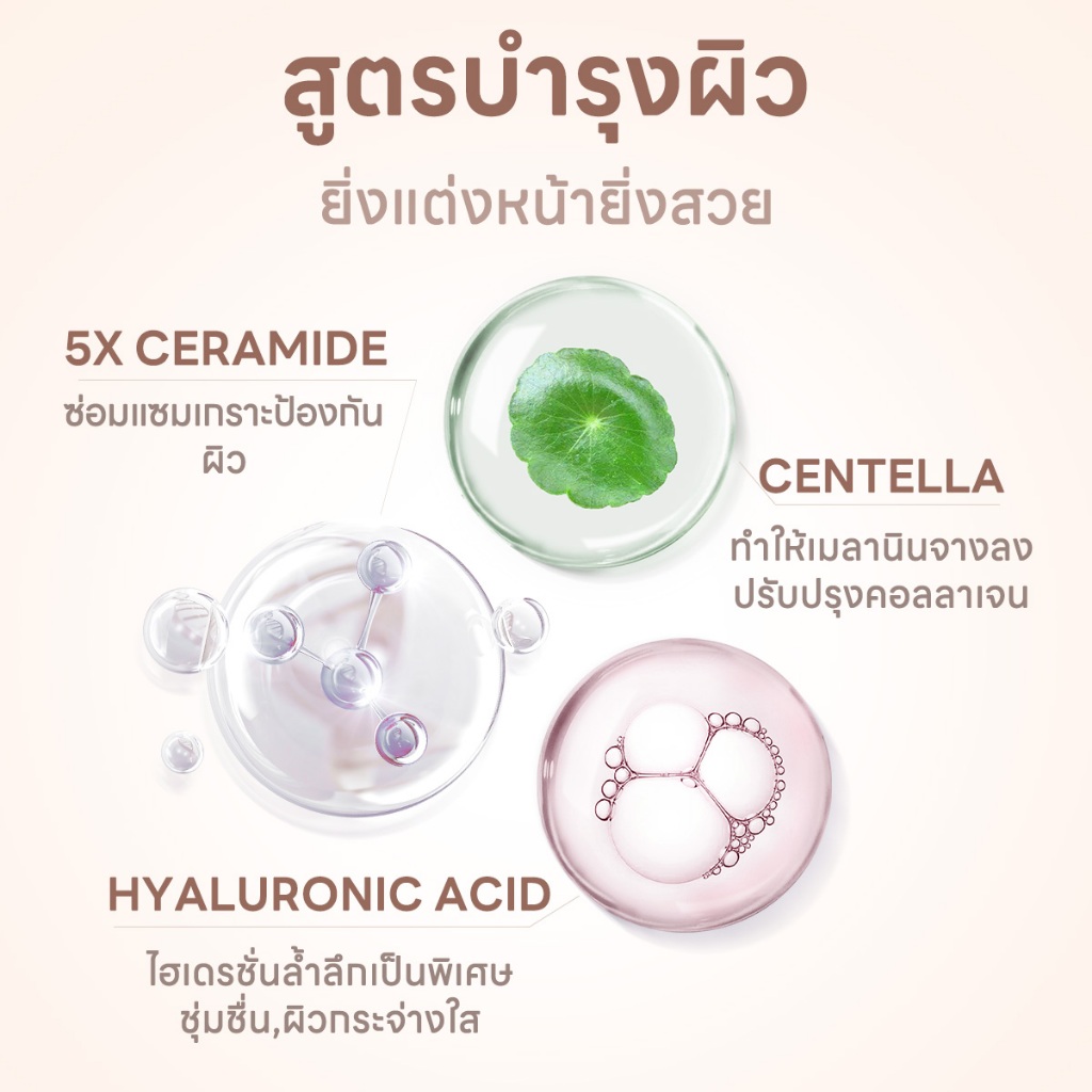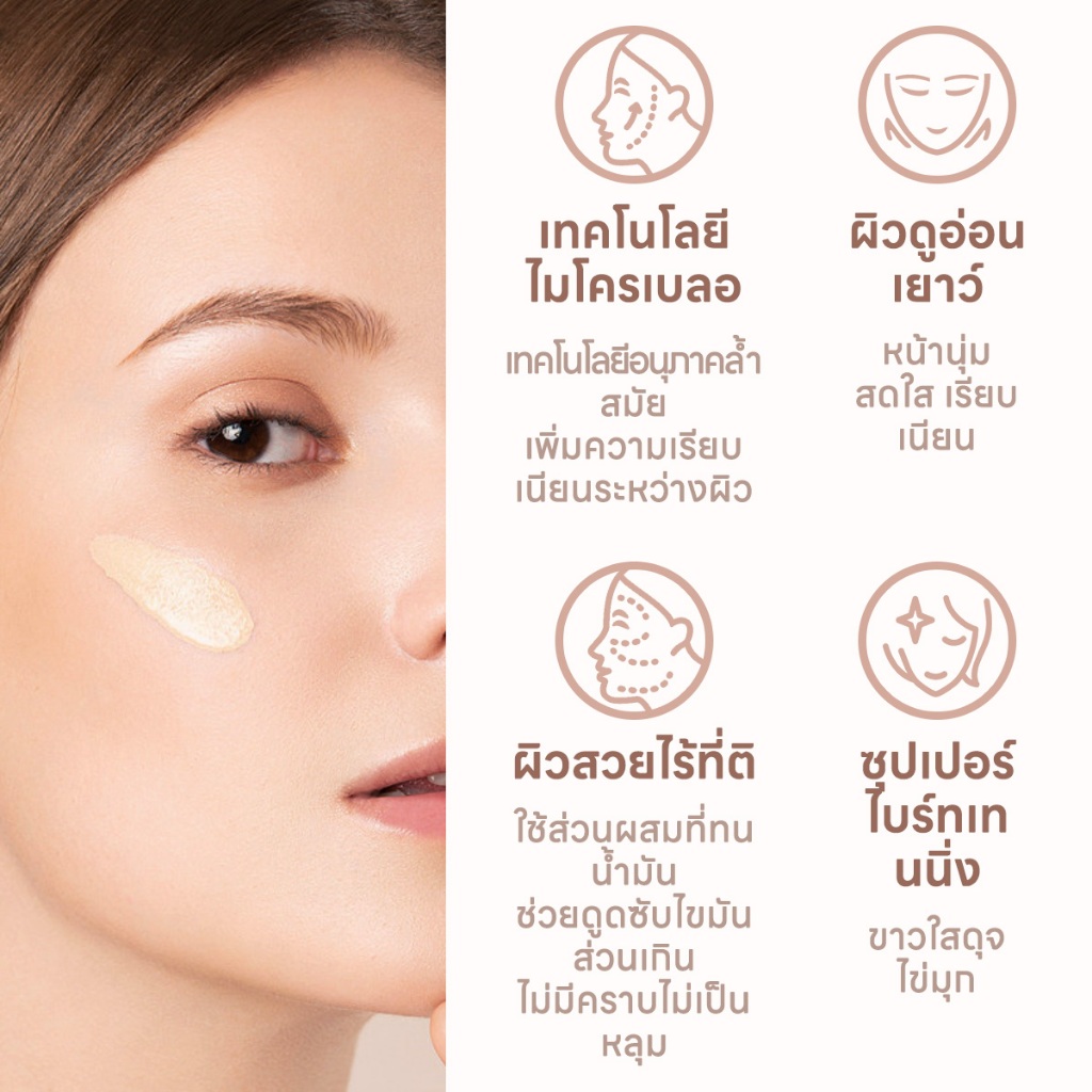 ✨เนื้อสัมผัสละเอียดและเรียบเนียน เมคอัพให้ความรู้สึกบางเบาและระบายอากาศได้ดี ทำให้ได้ลุคนู้ดอย่างเป็นธรรมชาติ