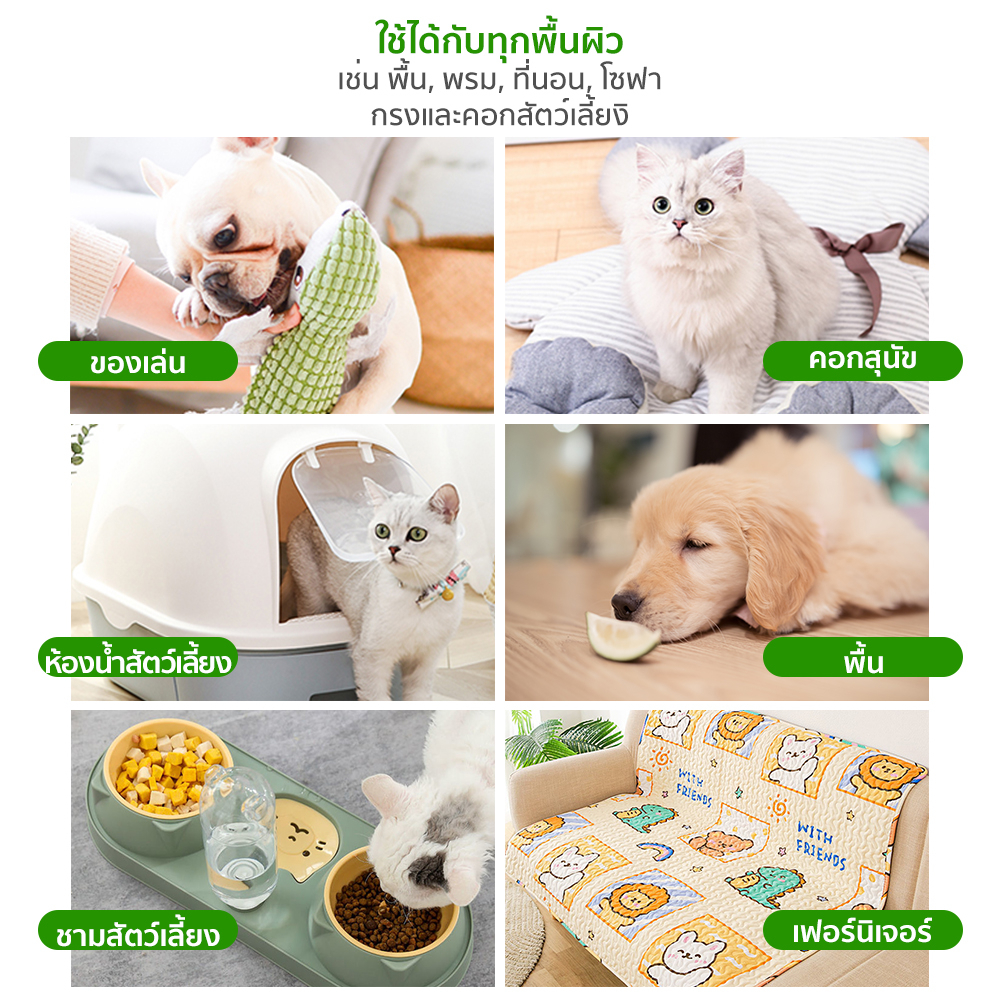 และสามารถปล่อยให้แห้งตามธรรมชาติ นอกจากนี้ยังสามารถฉีดบนผ้า และเช็ดอุปกรณ์เครื่องใช้ที่ต้องการฆ่าเชื้อหรือดับกลิ่นสัตว์เลี้ยง ,รองเท้า และส่วนอื่นๆ