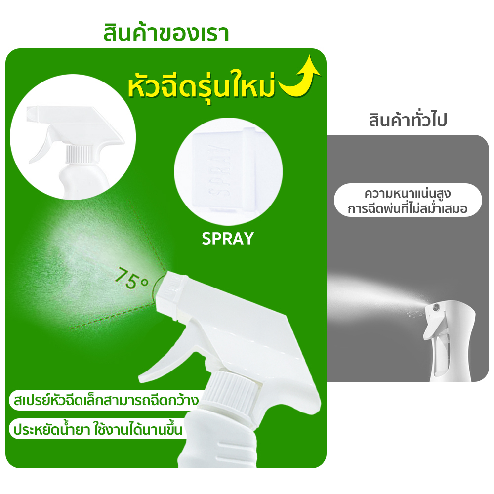 -สามารถฉีดน้ำยาฆ่าเชื้อลงบนพื้นที่ต้องการ น้ำยาจะทำการฆ่าเชื้อโดยตรงโดยไม่ต้องล้างออก