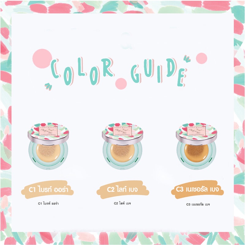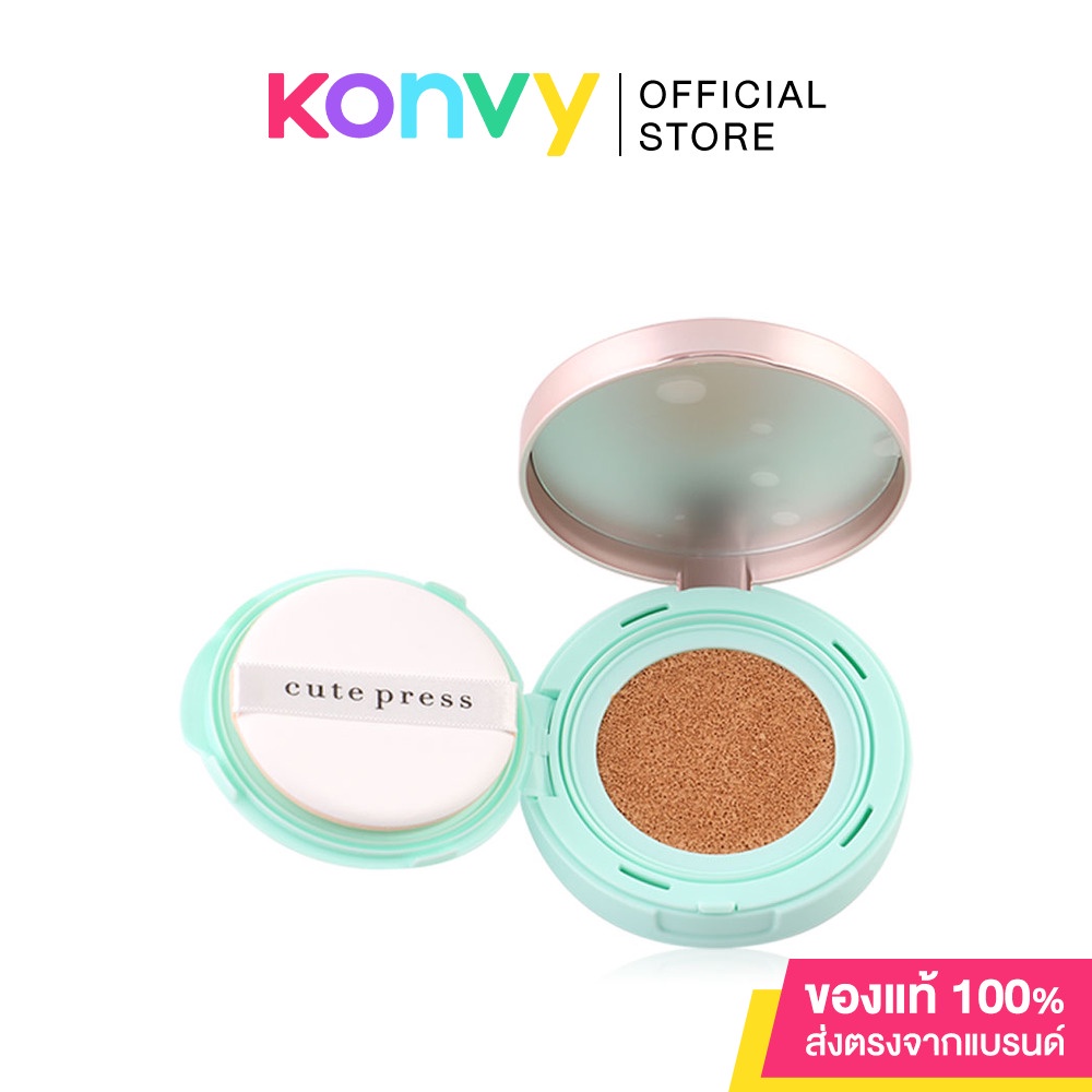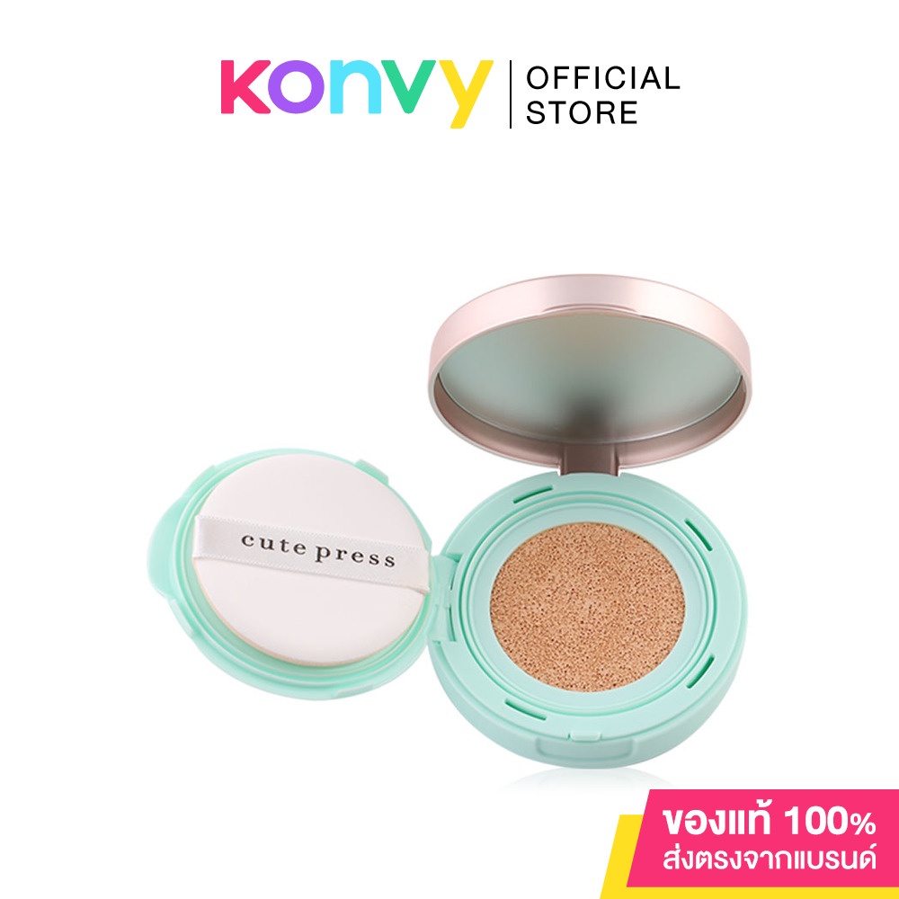 Cute Press Bye Bye Oil Cushion Foundation Powder SPF50+ PA+++ 20g #C1 Bright Aura คุชชั่นเนื้อบางเบา เกลี่ยง่าย แห้งไว กันเหงื่อ กันน้ำ ช่วยปกปิดผิวให้เรียบเนียนอย่างเป็นธรรมชาติ พร้อมควบคุมความมันได้ยาวนานถึง 12 ชั่วโมง และปกป้องผิวจากรังสี UVA และ UVB ด้วยค่า SPF 50+ PA+++คุณสมบัติโดดเด่น