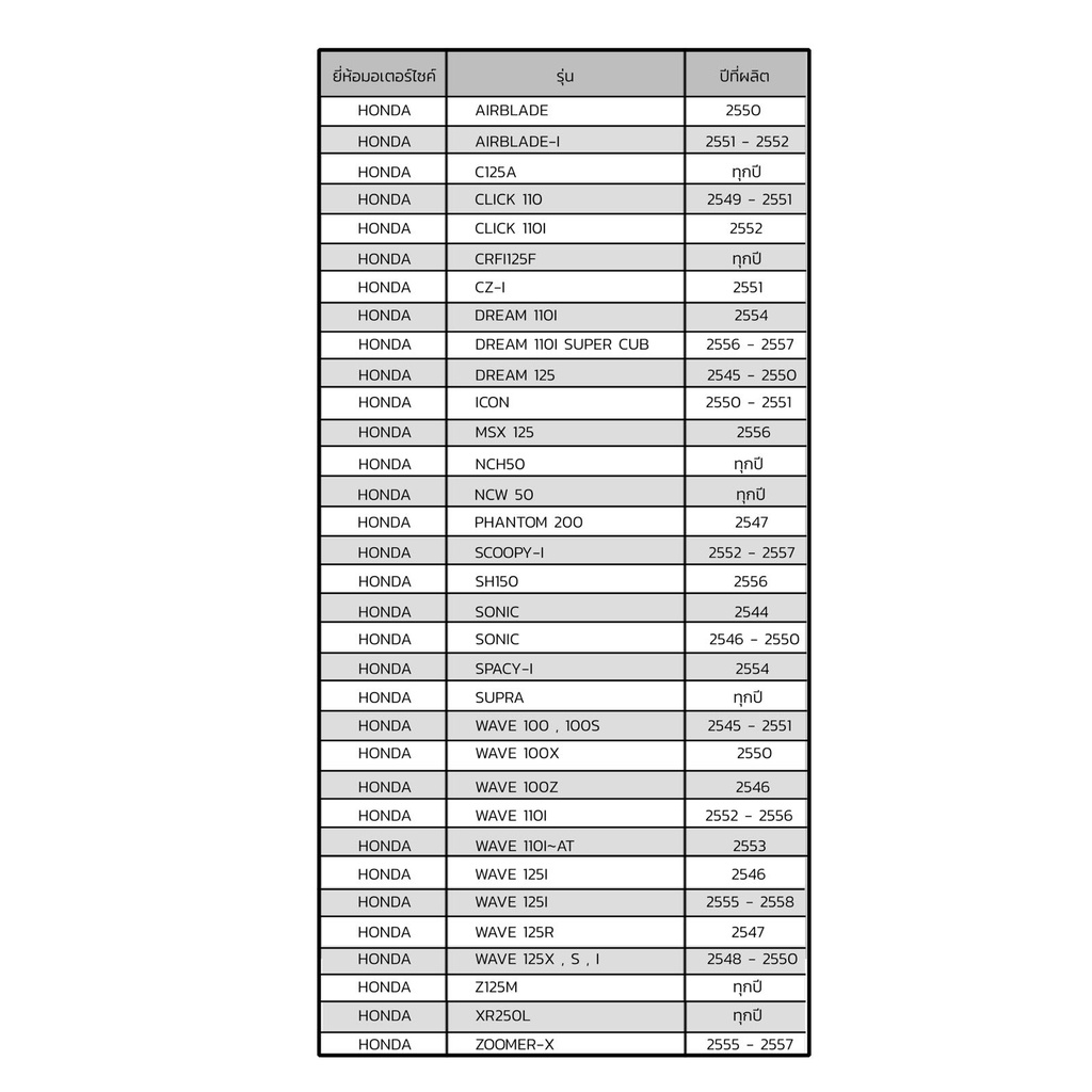 - ใช้กับรถรุ่นตามนี้
