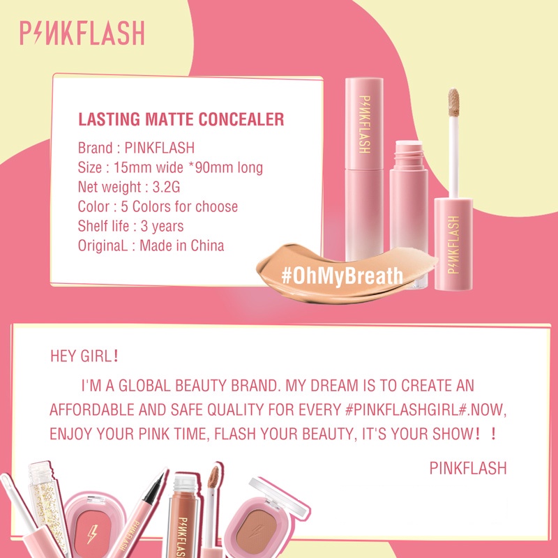 PINKFLASH #OhMyBreath "คอนซีลเลอร์ระบายอากาศ" ปกปิดรอยตำหนิ เช่น รอยคล้ำ / สิว / รอยแผลเป็นจากสิวได้อย่างมีประสิทธิภาพ ทำให้ใบหน้าดูสว่าง เป็นธรรมชาติ·ปกปิดจุดและริ้วรอยได้สูง บอกลารอยคล้ำและรอยตำหนิบนใบหน้า