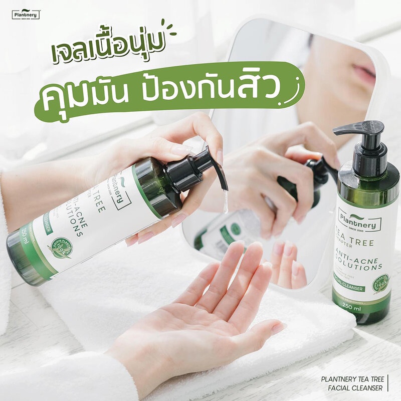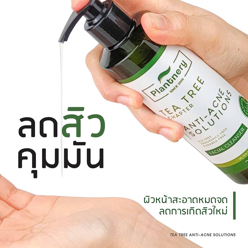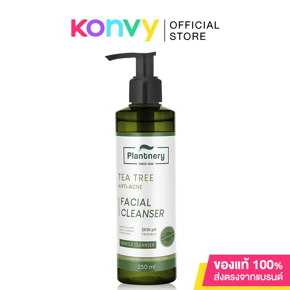 Cr. facebook.com/Plantnery•Plantnery Tea Tree Facial Cleanser 250ml เจลล้างหน้าสูตรอ่อนโยนพิเศษ สูตรลดสิว ควบคุมความมัน รูขุมขนอุดตัน ต้นเหตุการเกิดสิว จากสารสกัดเข้มข้นพิเศษจากทีทรี ช่วยทำความสะอาดได้อย่างล้ำลึก จากคราบฝุ่น มลภาวะ และสิ่งอุดตัน พร้อมคงความชุ่มชื้นยาวนานหลังล้าง