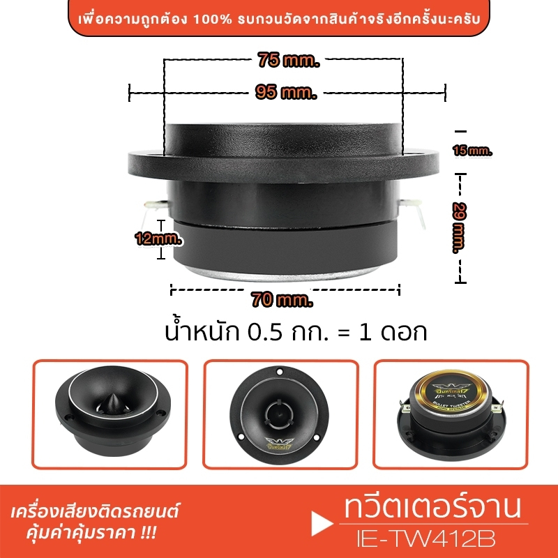 ทวิตเตอร์จาน ขนาด4" ให้เสียงแหลมที่ดังฟังชัด● แม่เหล็กขนาดใหญ่ หนา15mm.