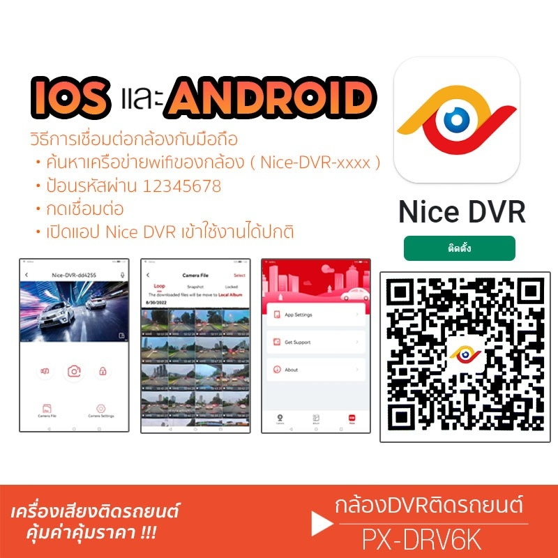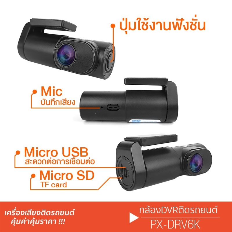 PLATINUM-X กล้อง กล้องบันทึก กล้องติดรถยนต์ กล้องบันทึกรถยนต์ ใช้สำหรับ จอแอนดรอย PX-DRV.6K คมชัด เครื่องเสียงรถยนต์ 6KDRV.6K = มุมมองกว้างประมาณ 170องศา