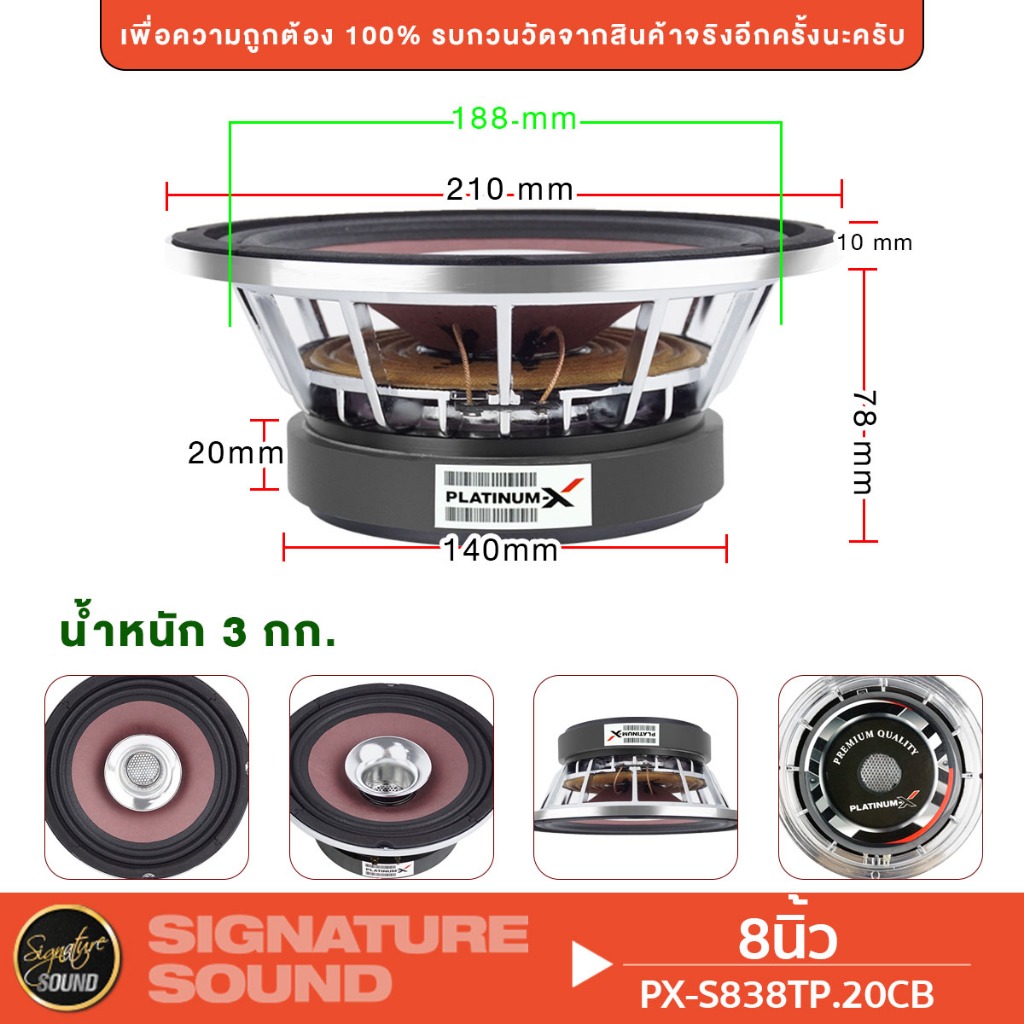 PLATINUM-X เครื่องเสียงรถยนต์ ลำโพงเสียงกลาง ปากแตร กันน้ำ แม่เหล็ก120mm. หนา20mm. ดอกลำโพง ขนาด8นิ้ว PX-S825.35WTP /PX-S838TP.20CB***1ดอก***