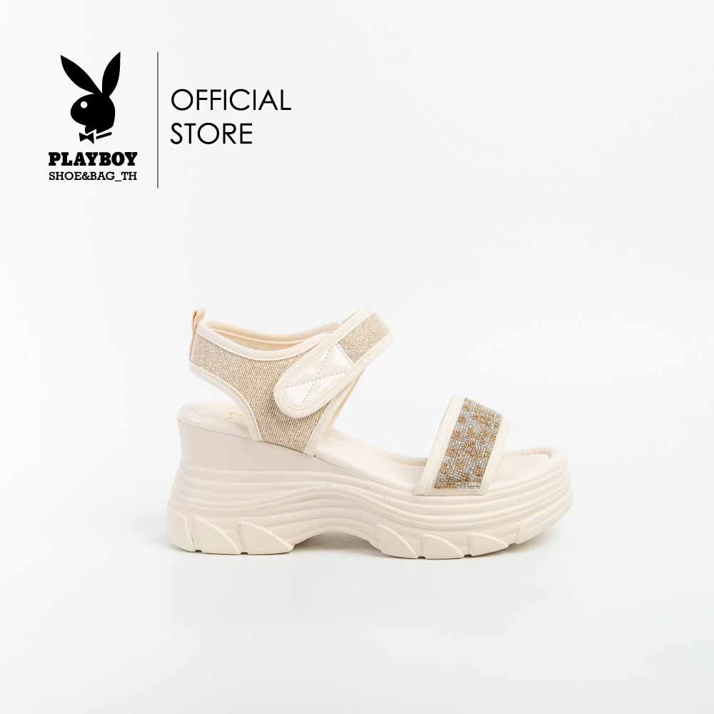 Playboy thiết kế ST-H231C1125-WH hở ngón bằng da thật cho nữ kem nền màu trắng