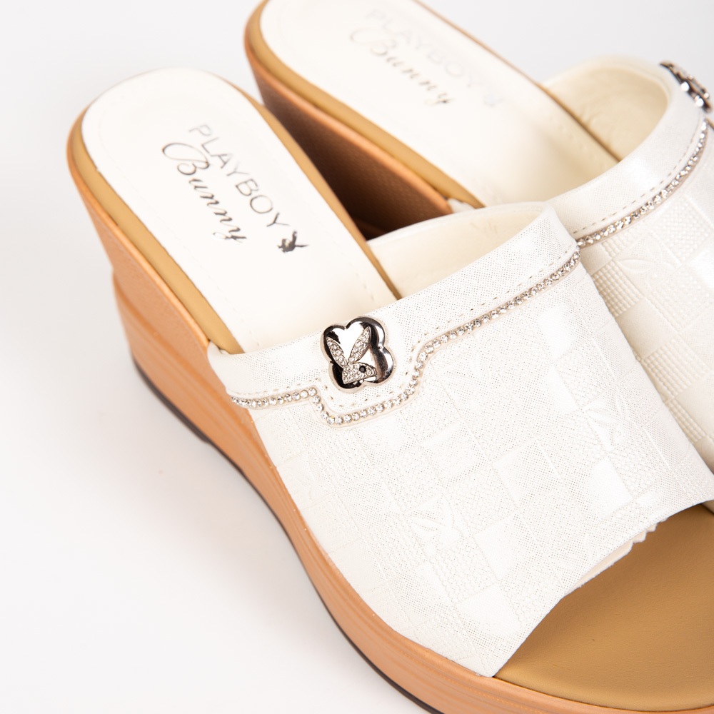 Playboy Xăng đan đế xuồng ST-HS234C104 Giày cao gót lấp lánh Thiết kế 2 màu trắng và đen