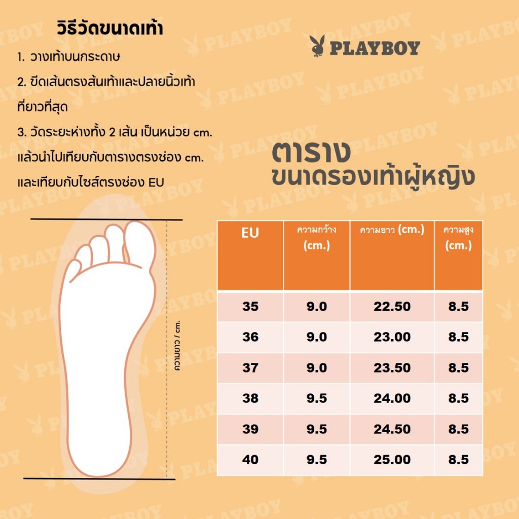 6.Size ตามตารางด้านล่าง ส้นสูง 4 นิ้ว