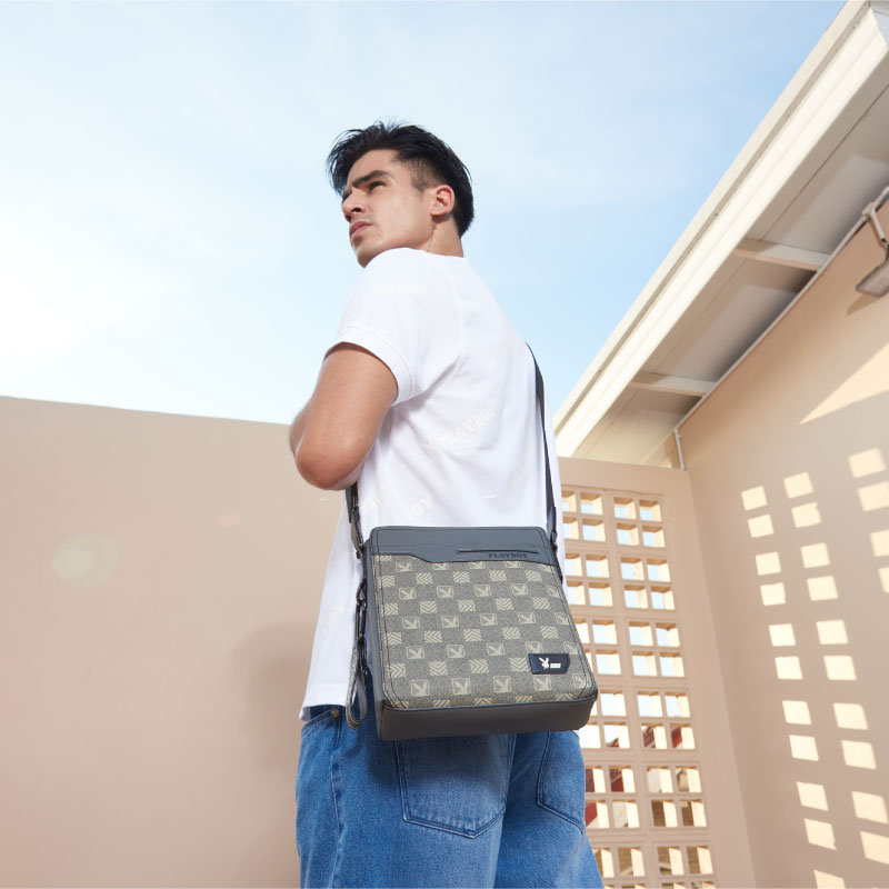 Playboy: Túi nam Glam ST-B234PBM257-GY túi đưa thư nam túi đưa thư thiết kế logo PB màu xám