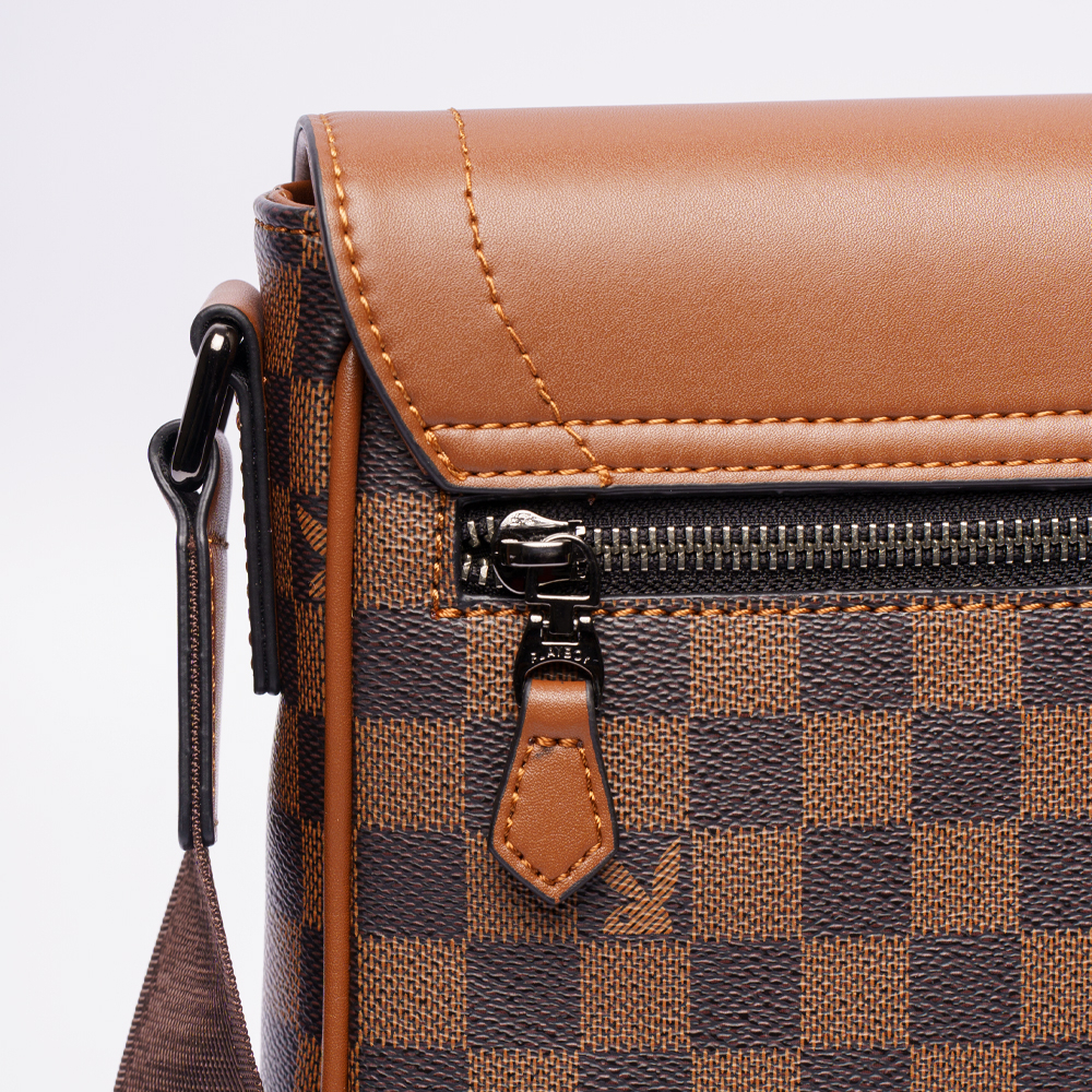 Playboy Túi đeo vai da thật thật chính hãng cho nam túi đưa thư ST-BS233PBM002-GY màu xám chữ lồng