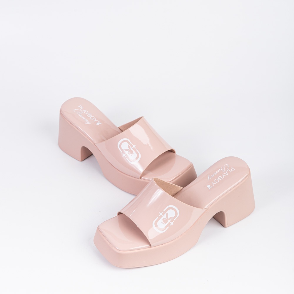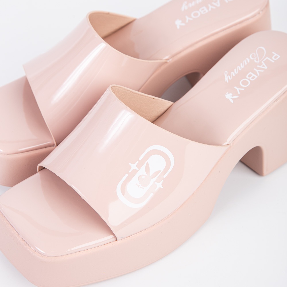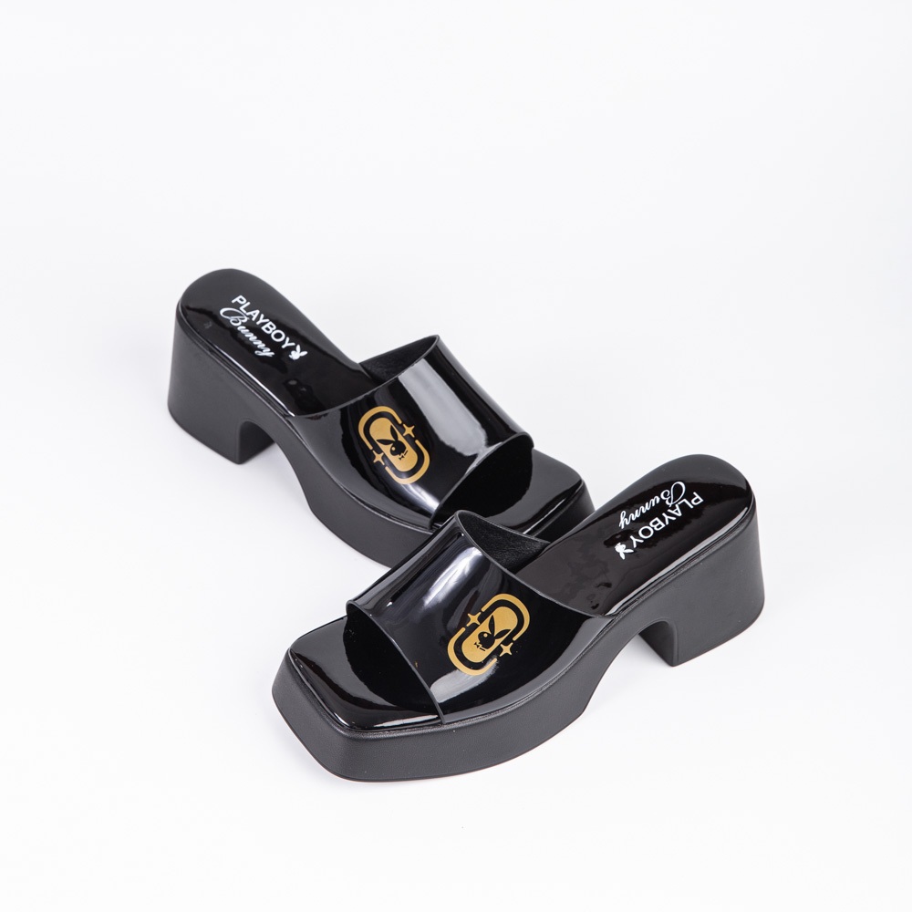 1.Playboy รองเท้าแตะส้นสูง ลิขสิทธิ์แท้ รุ่น ST-HS242C108 ดีไซน์สกรีนโลโก้ มี 2 สี สีดำและสีชมพู