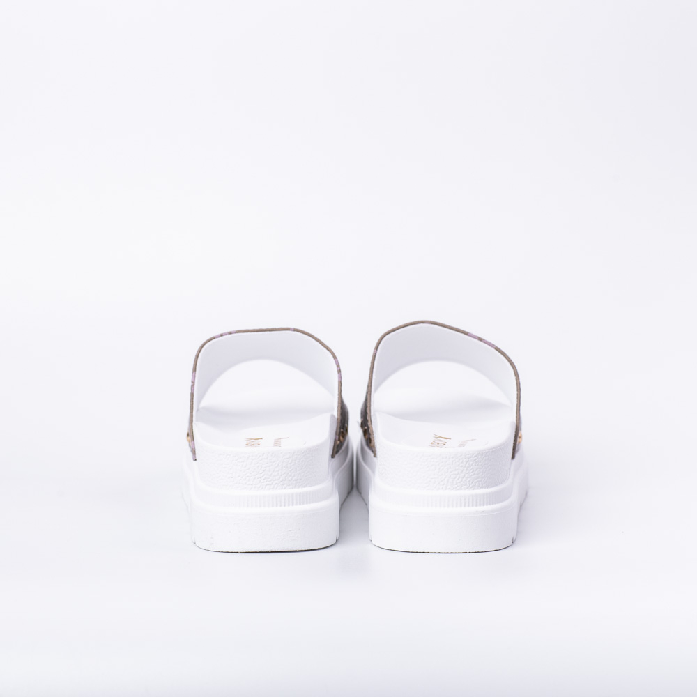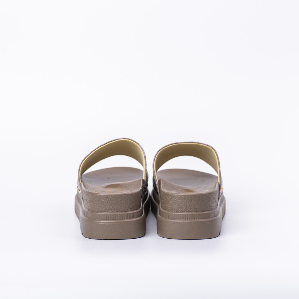 1.รองเท้าแตะส้นหนาแบบสวมผู้หญิง2.ผลิตจากวัสดุหนังเทียม/ตัวพื้นรองเท้าทำจากวัสดุยางสังเคราะห์