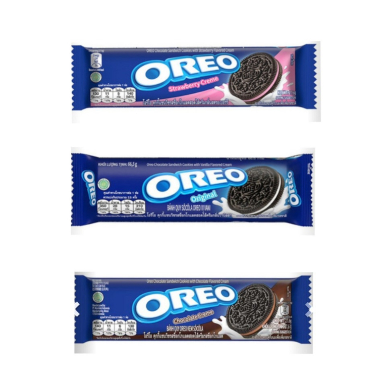 โอรีโอ คุกกี้แซนวิชสอดไส้ครีม บิด ชิมครีม จุ่มนม! ไปกับ โอรีโอ คุกกี้แซนวิชรสช็อกโกแลต สอดไส้ครีมช็อกโกแลต ที่ให้รสชาติอร่อย กรุบกรอบ เข้มข้น หอมหวาน รับประทานได้หลากหลายรูปแบบ ให้ทุกคนในครอบครัวมีช่วงเวลาที่อร่อยพร้อมหน้ากันทุกวัน มี 3 รสชาติ ครีม ชอคโกแลต และสตอเบอรี่ ขนาด28.5กรัม