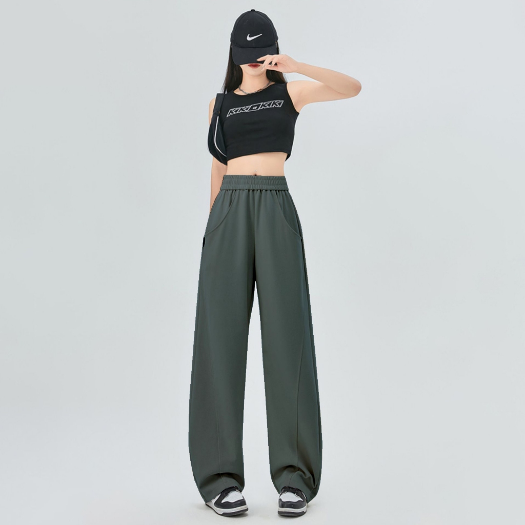 🔥🔥G39🔥🔥Quần ống rộng có túi khóa kéo hai hàng khuy phù hợp với S-7XL cỡ bé gái