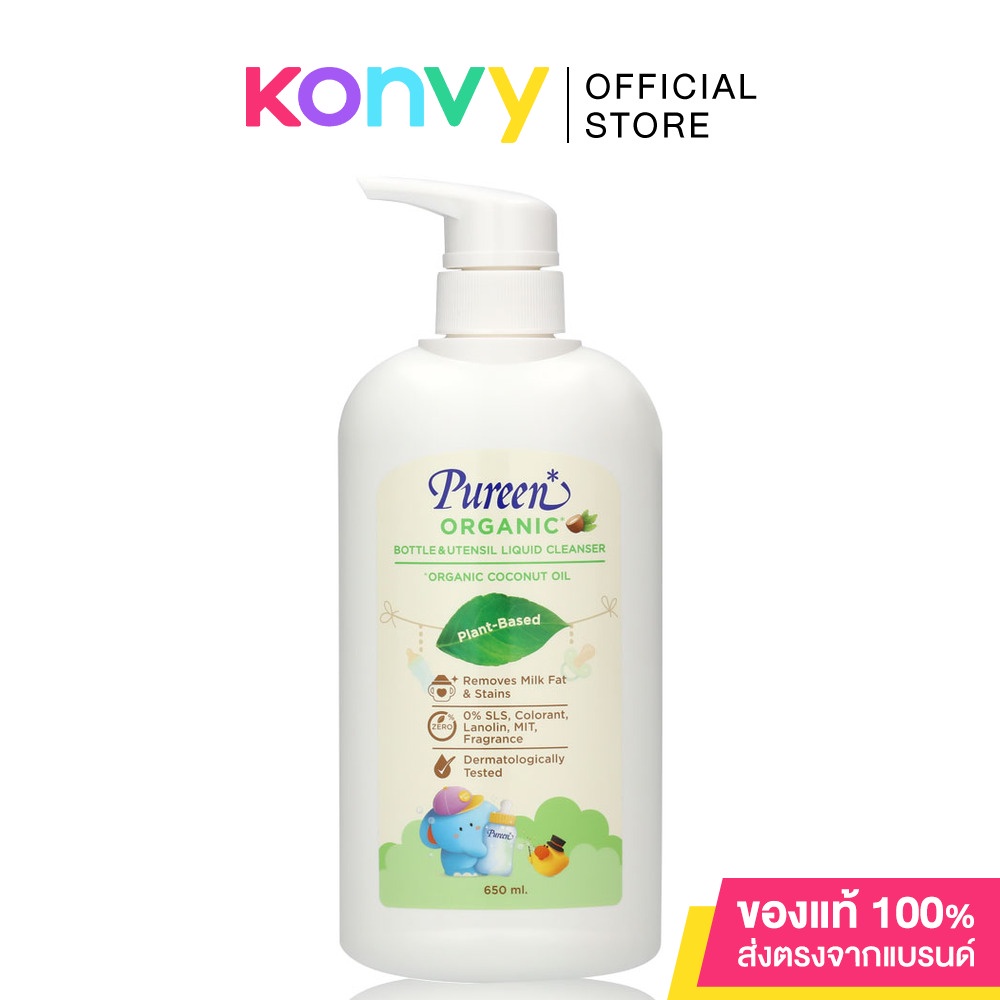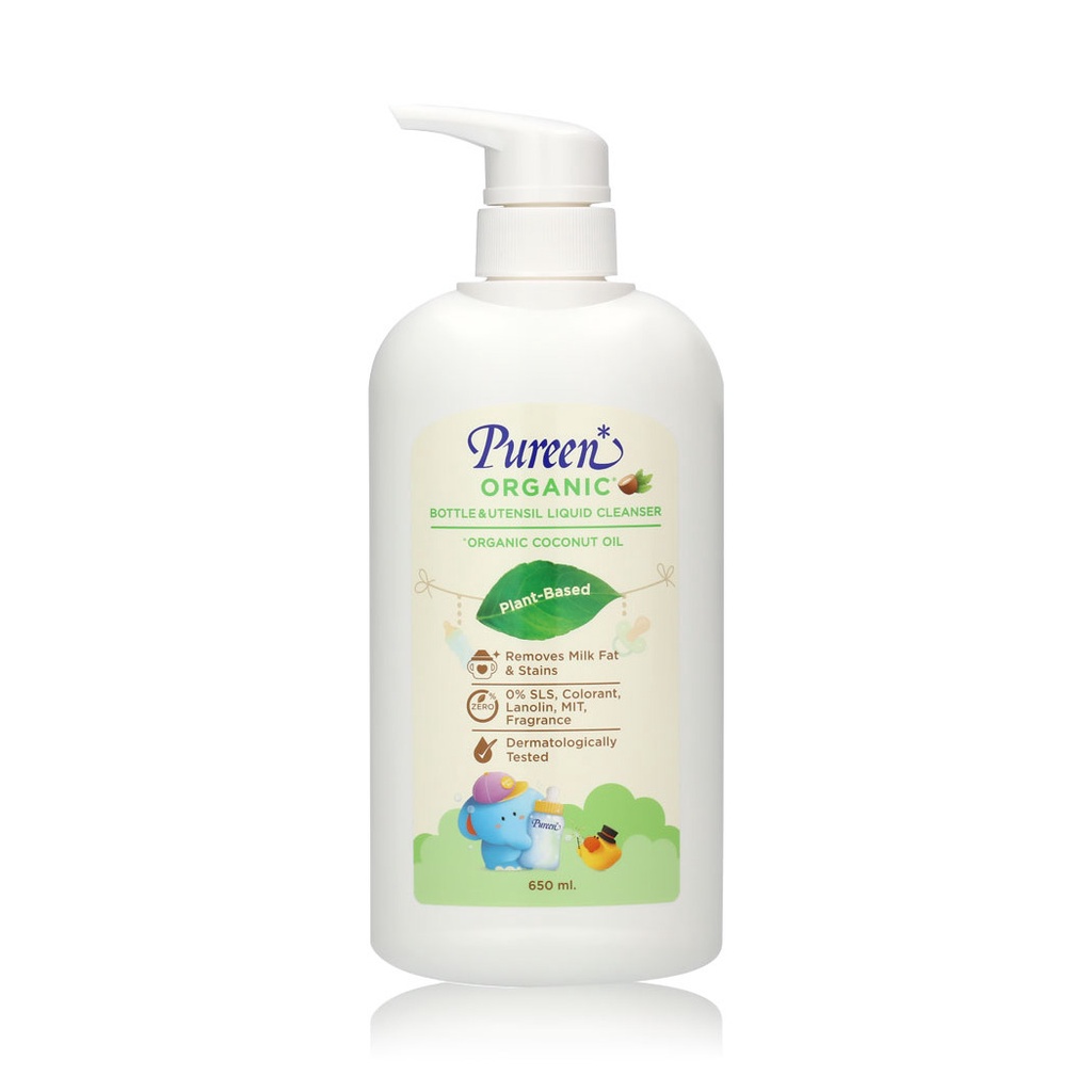 Cr. facebook.com/pureenthaiPureen Organic Bottle&Utensil Liquid Cleanser Pump 650ml น้ำยาล้างขวดนมสูตรออร์แกนิค ประกอบด้วยออร์แกนิคโคโค่นัทออยล์ที่ได้รับการรับรองโดย USDA ผ่านการทดสอบว่าไม่ระคายเคือง (Dermatologically Tested)