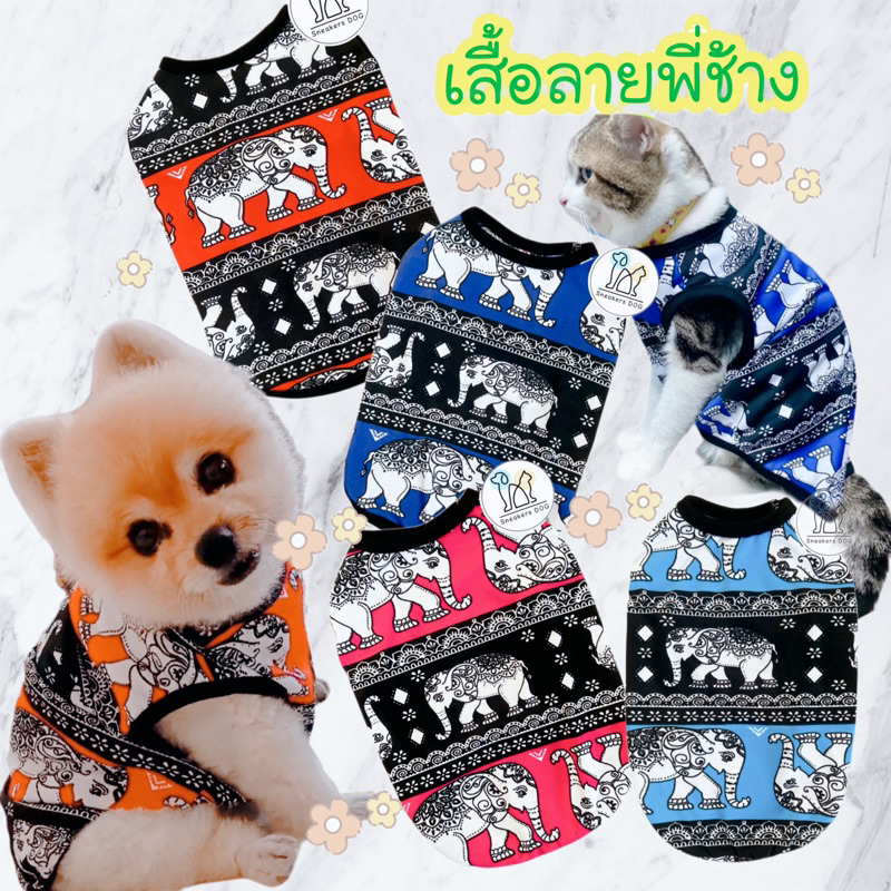 🐘Áo cho thú cưng‼️🇹🇭Họa tiết quần voi, quần áo phổ biến cho chó, Chủ đề du lịch
