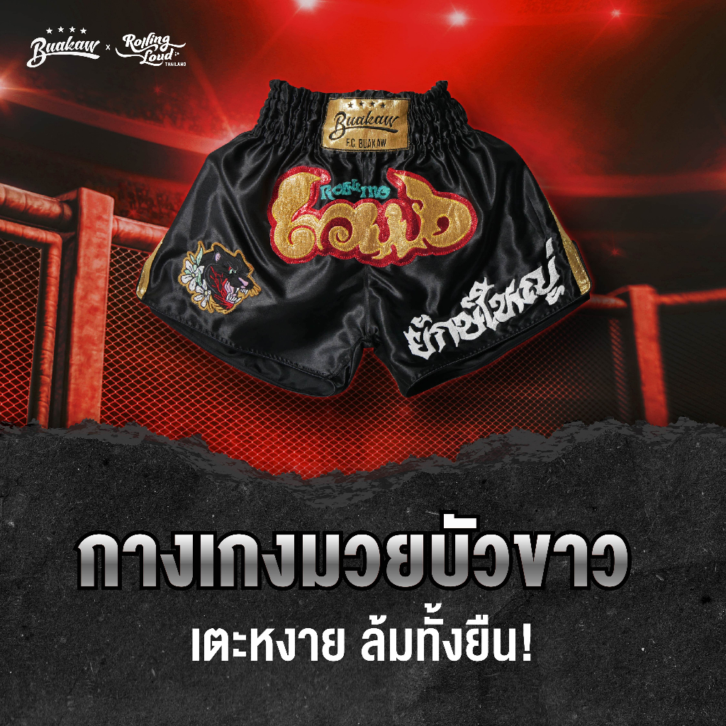 "Rolling Loud x Buakaw Flight club Thai Boxing Shorts (Unisex)โรลลิ่ง ลาวน์ x บัวขาว กางเกงมวย