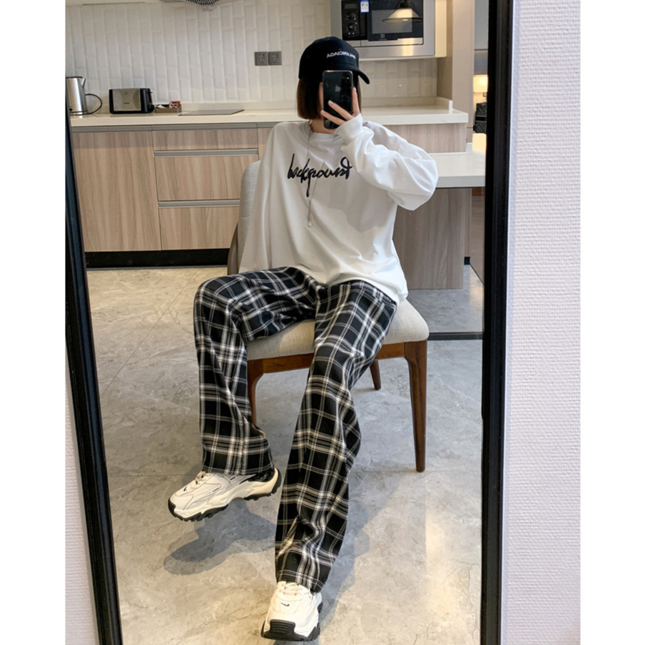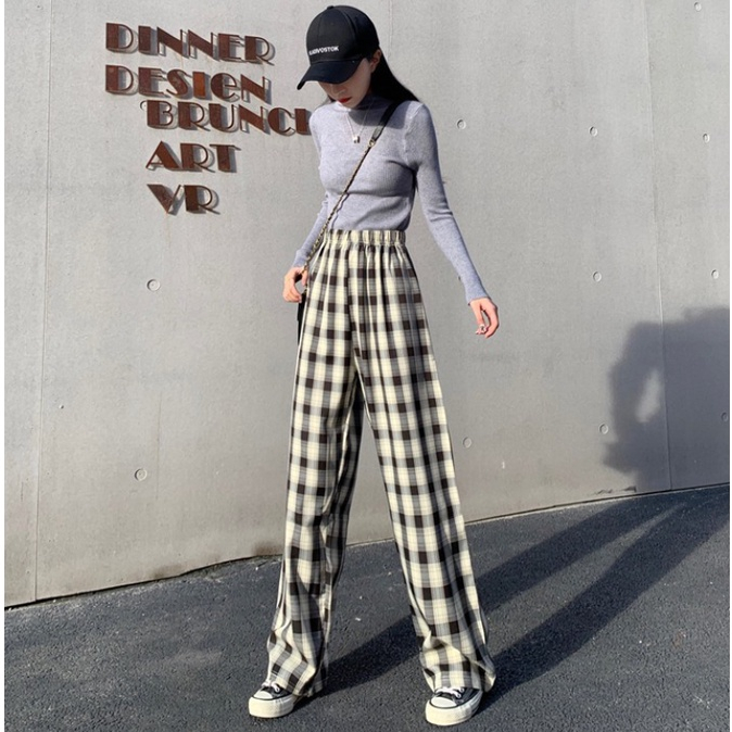 30 màu siêu rẻ🍧Quần thoải mái cạp cao kẻ ca rô phong cách Hàn Quốc cho nữ #355