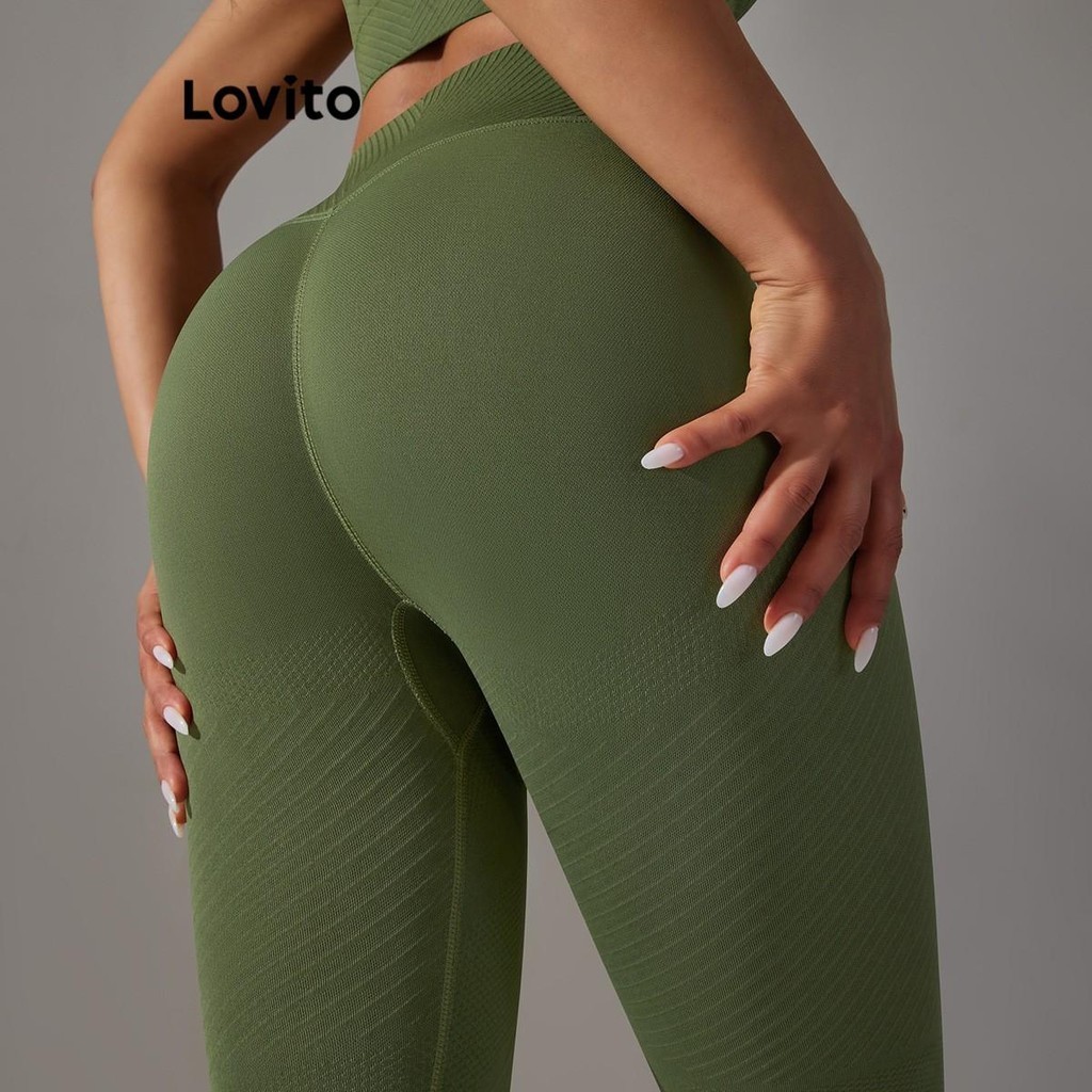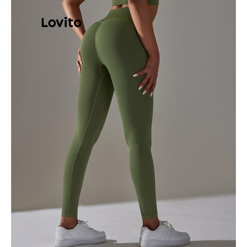 Lovito Quần legging thể thao co giãn cao in chữ l26ad043 (xám, hồng, xanh dương, đen)