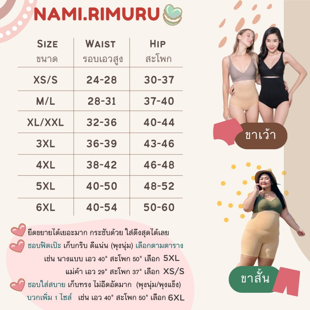 RIMURU PREMIUM UNDERWEAR & BRAนามิ กางเกงกระชับหน้าท้องมีหลายขนาด เลือกจาก*รอบเอวและสะโพกของคุณผู้หญิงได้เลย