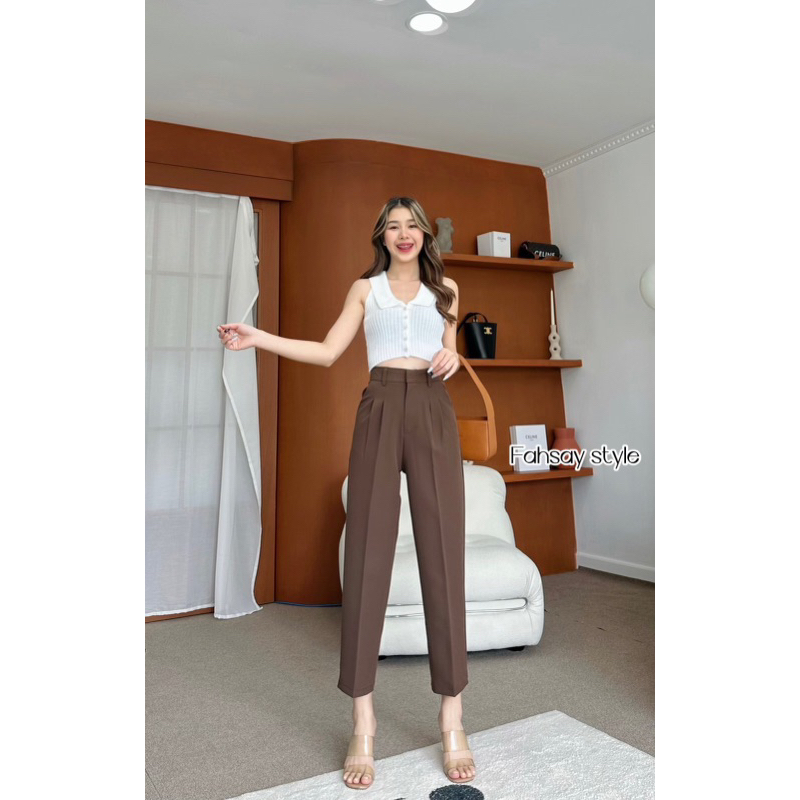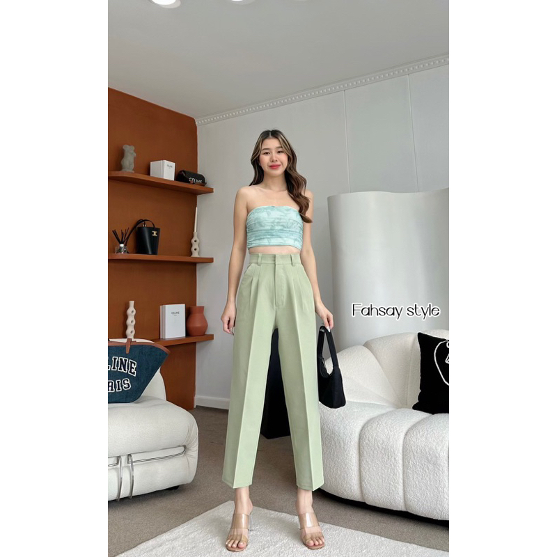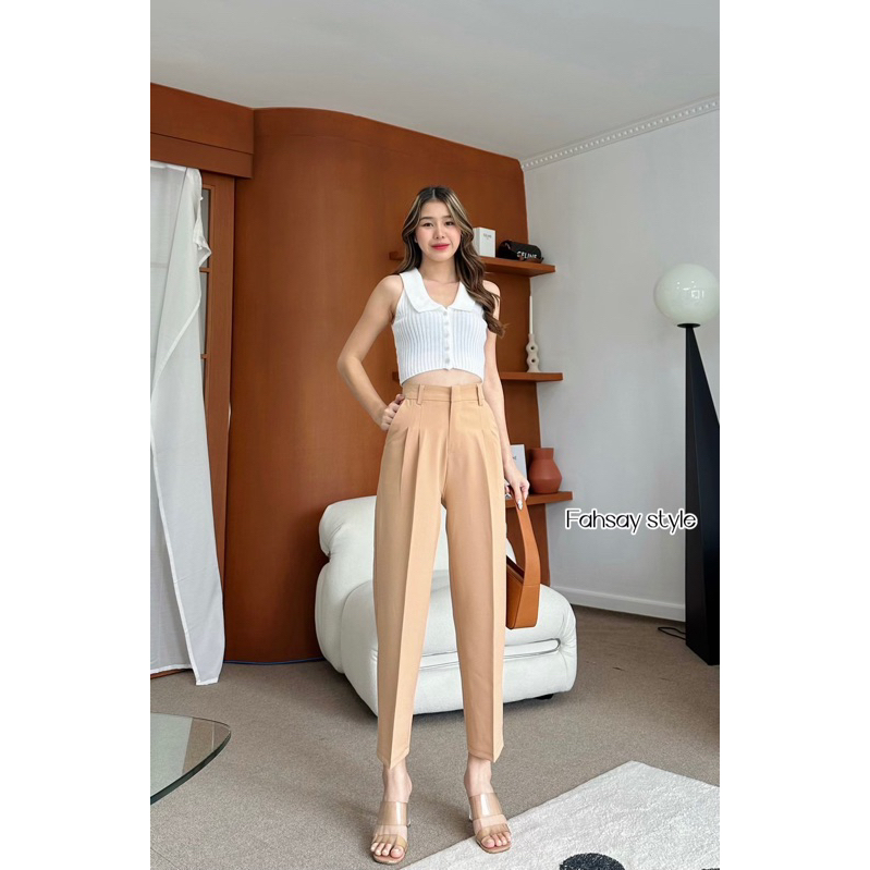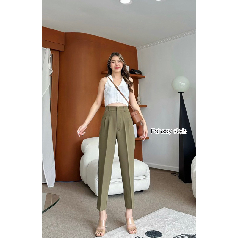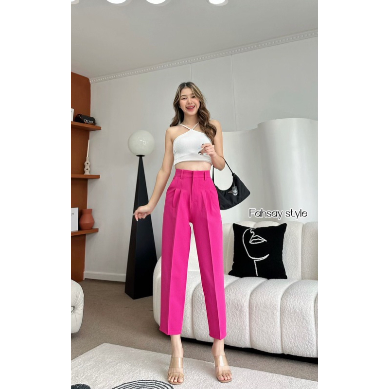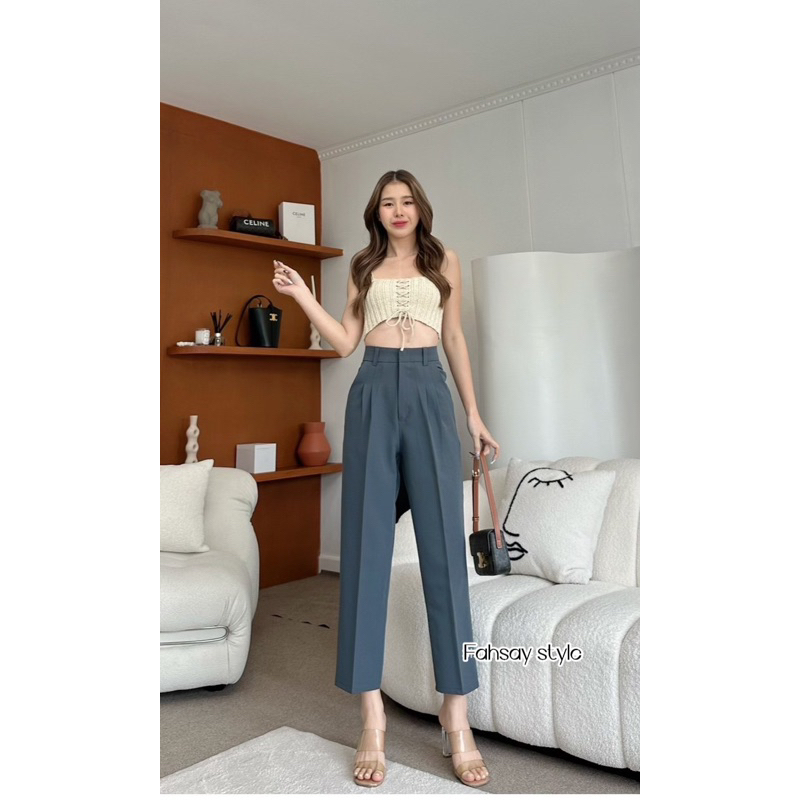 กางเกงทรงบอยกระบอกเล็กเอวสูง ขายาว งานหนา ทิ้งตัว มีน้ำหนัก ทรงสวยผ้าไมโคร