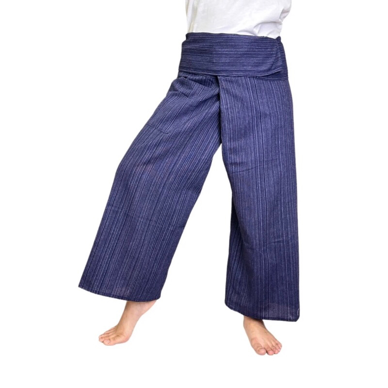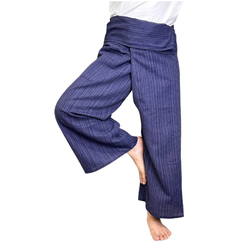 Thai Fisherman Pants Yoga Trousers, กางเกงเล สีน้ำเงิน ขนาดฟรีไซส์ ผ้าฝ้าย คอตตอนเอวกว้างสุด 55นิ้ว ยาว 37นิ้ว เหมาะสำหรับสวมใส่อยู่บ้าน เล่นโยคะ ใส่ได้ทั้งชายและหญิง รวมทั้งหญิงตั้งครรภ์#กางเกงเล #กางเกงขาก๊วย