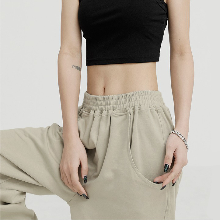 🌀PS Quần nỉ nữ màu trơn phong cách hip hop quần cạp cao phong cách Hàn Quốc #00140