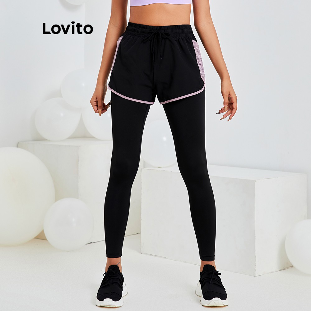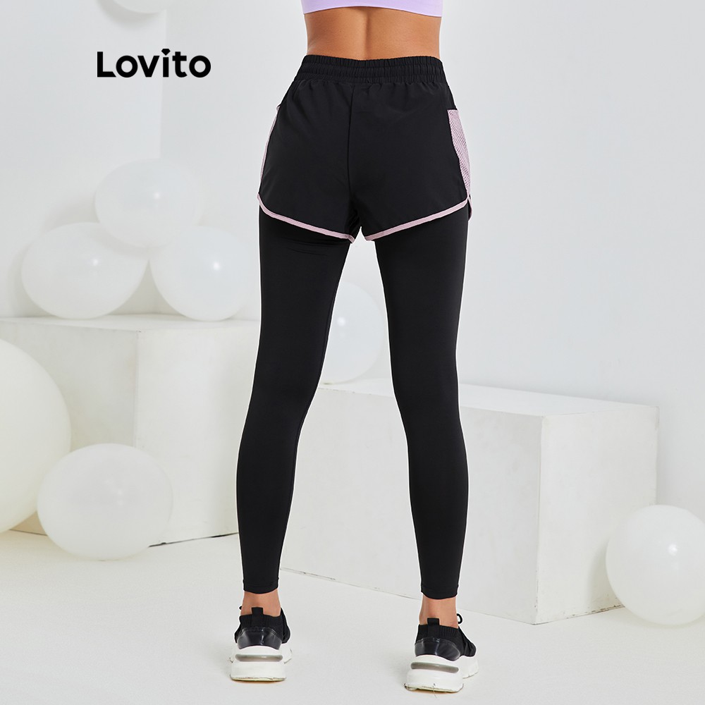 Lovito quần soóc thể thao cơ bản cho nữ quần thể thao màu trơn lnl43178